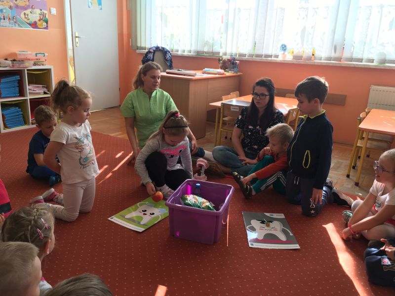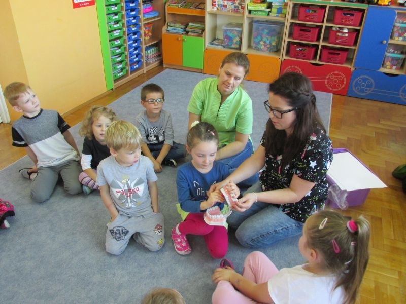 Przedszkole Publiczne nr 29 im. Marii Konopnickiej brało udział w zajęciach edukacyjnych na temat prawidłowej higieny jamy ustnej realizowanego przez Mościckie Centrum Medyczne sp. z o.o. pod nazwą „Prowadzenie edukacji i kształtowanie zachowań prozdrowotnych u dzieci i rodziców w zakresie zdrowia jamy ustnej”. Zajęcia były finansowane z budżetu Miasta Tarnowa. Lekarz Stomatolog wraz z higienistką stomatologiczną edukowali dzieci z zakresu prawidłowego dbania o higienę jamy ustnej oraz stosowania odpowiedniej diety, która może skutecznie zapobiegać rozwojowi próchnicy. Wszystkie dzieci podczas zajęć dowiedziały się co jeść, aby ząbki były zdrowe oraz jak prawidłowo dbać o zęby.W ramach edukacji przedszkole otrzymało pakiet materiałów edukacyjnych pozwalających w późniejszym czasie realizować zajęcia w zakresie higieny jamy ustnej. Również wszystkie dzieci otrzymały zestawy edukacyjne a rodzice broszurkę informacyjną poruszającą tematykę higieny, diety i profilaktyki jamy ustnej. Bardzo dziękujemy wszystkim uczestnikom za czynny udział w zajęciach.