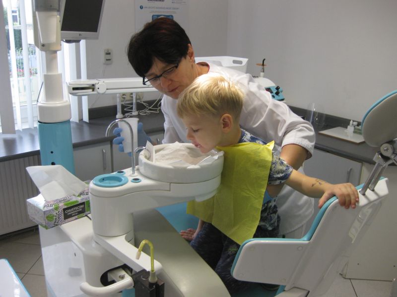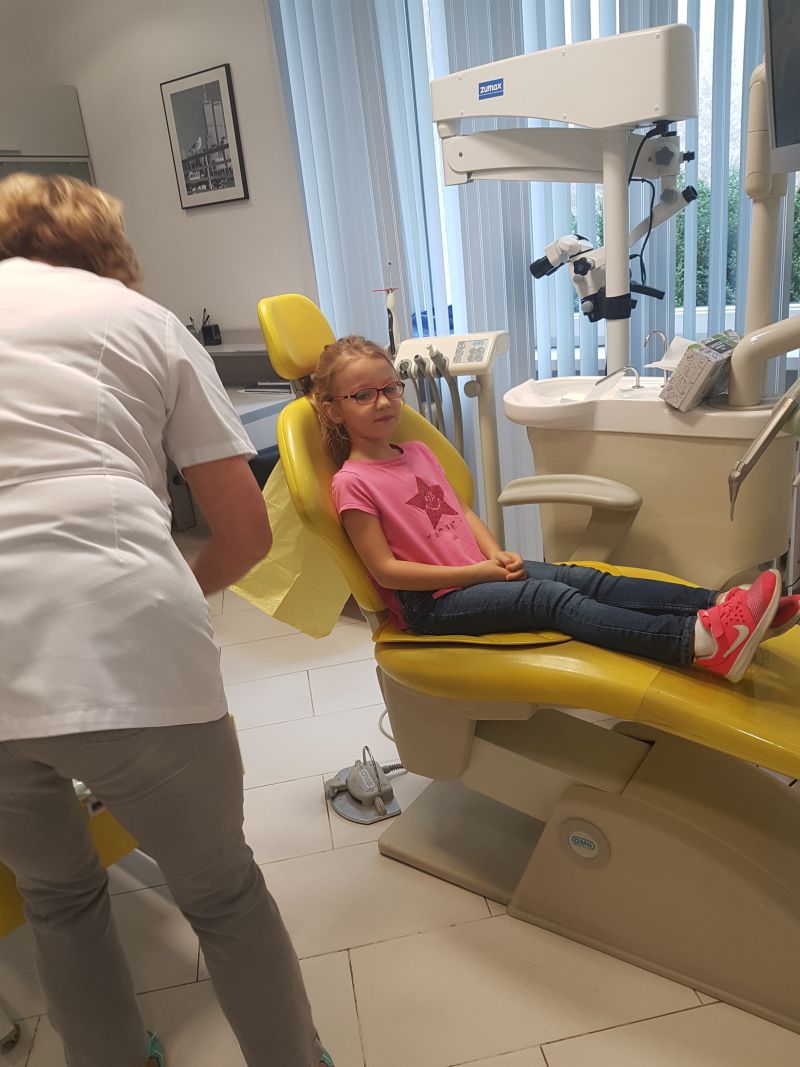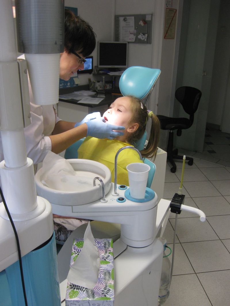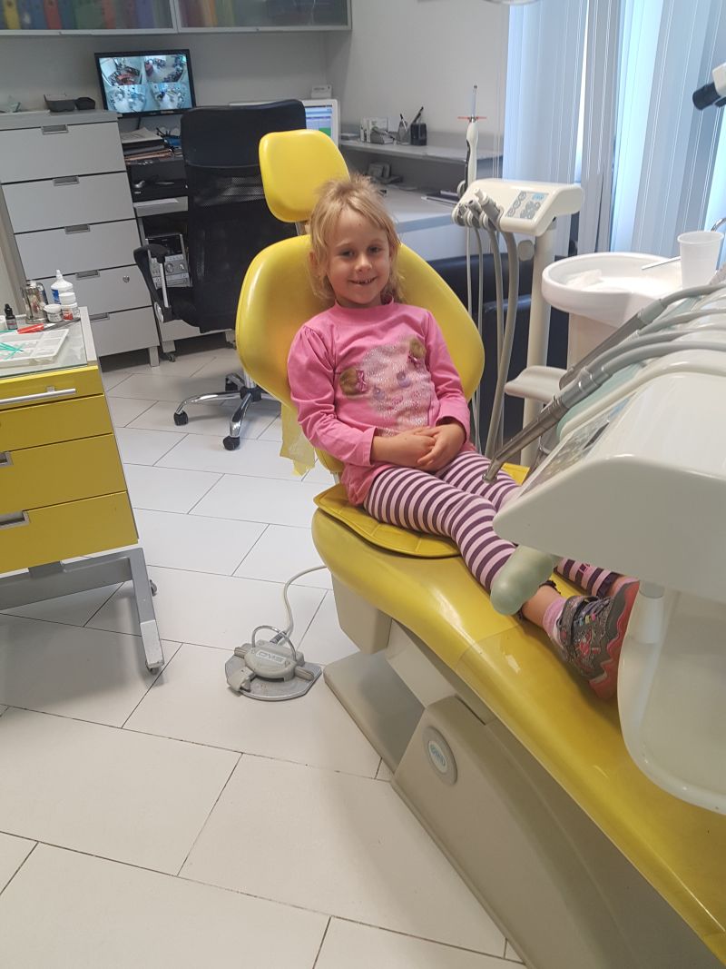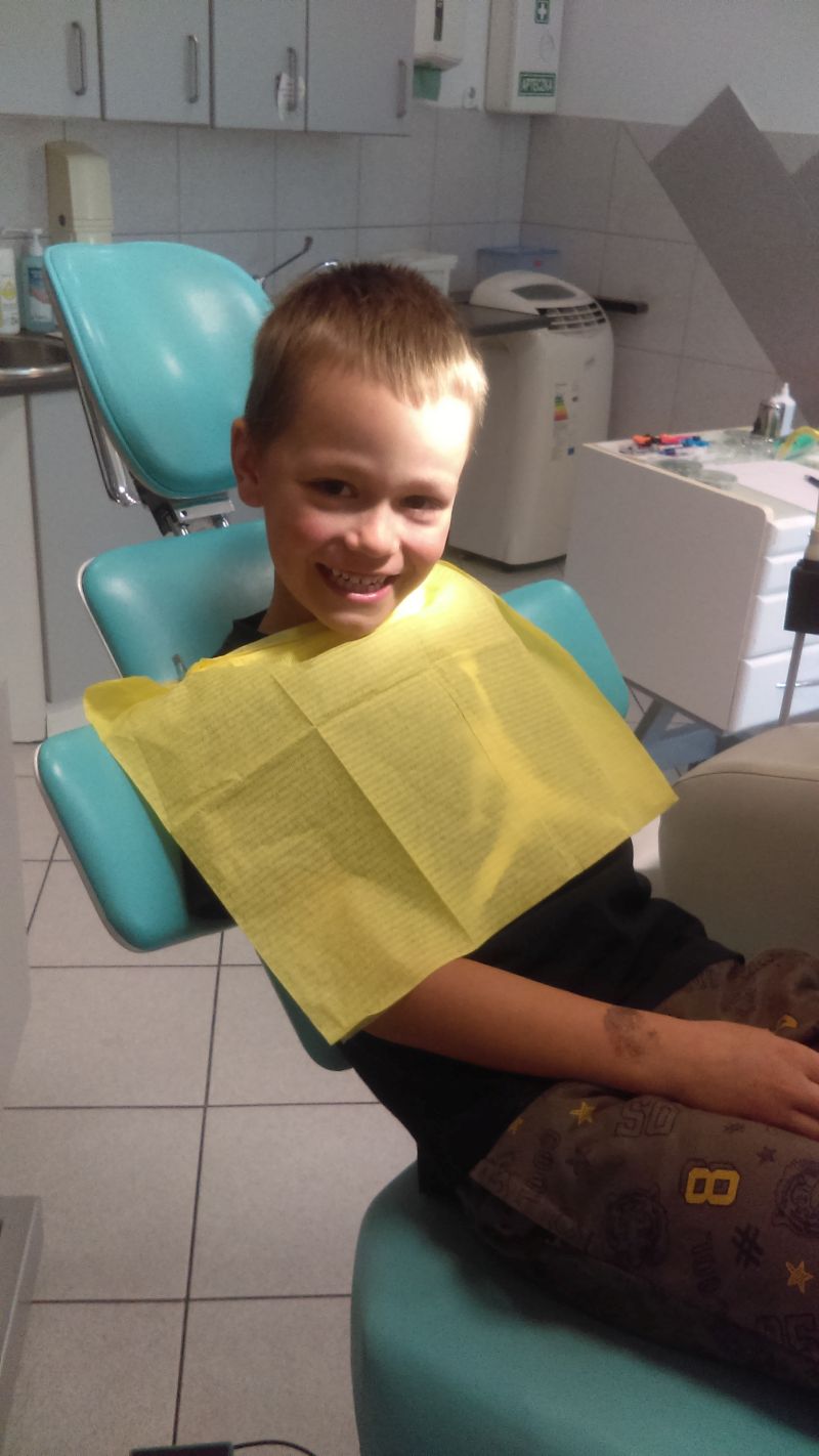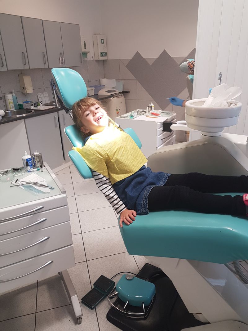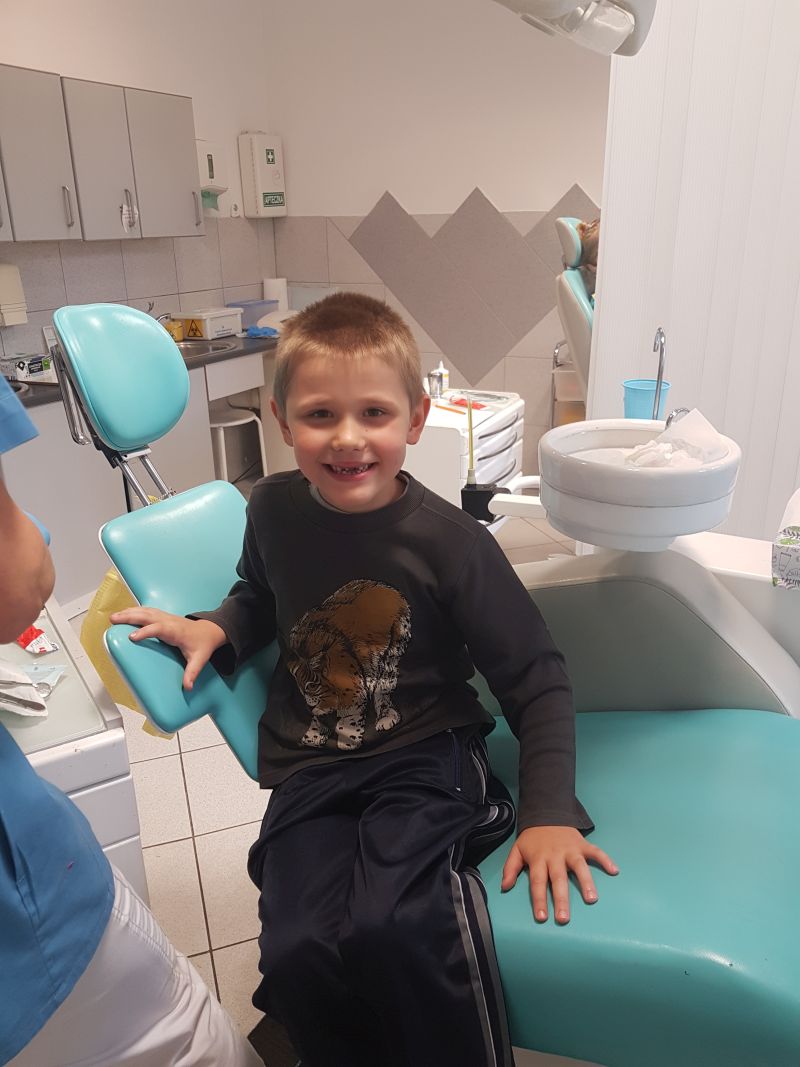 W październiku 2018 r grupy starszaków udały się do gabinetu stomatologicznego .Pani stomatolog podczas przeglądu małych ząbków,doradzała dzieciom jak należy o zęby dbać: jak i czym je czyścić ,jak płukać wodą i gdzie się udać gdyby z ząbkiem zaczęło się dziać coś niedobrego.Mali pacjenci uważnie słuchali rad i z uśmiechem wrócili do przedszkola.
