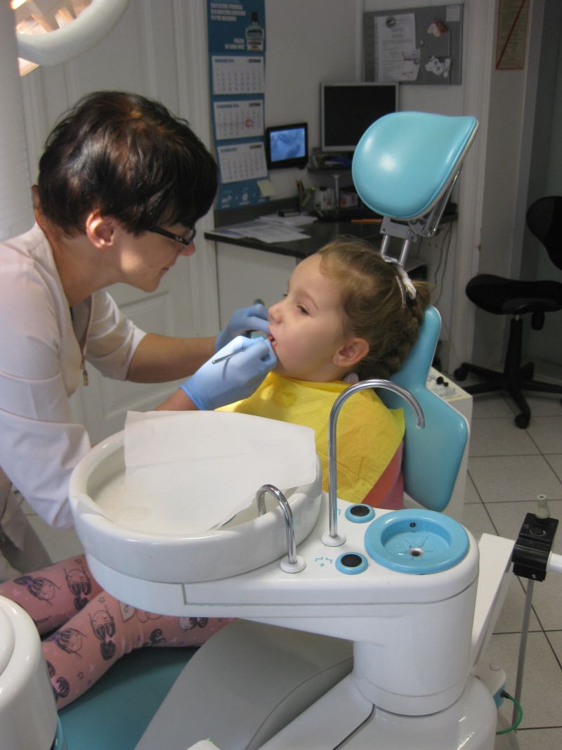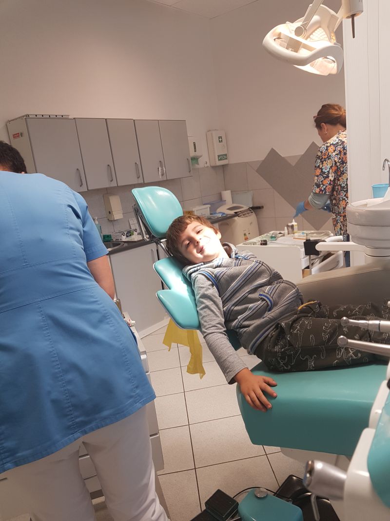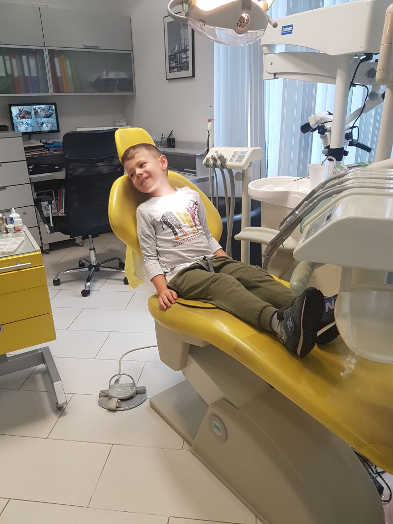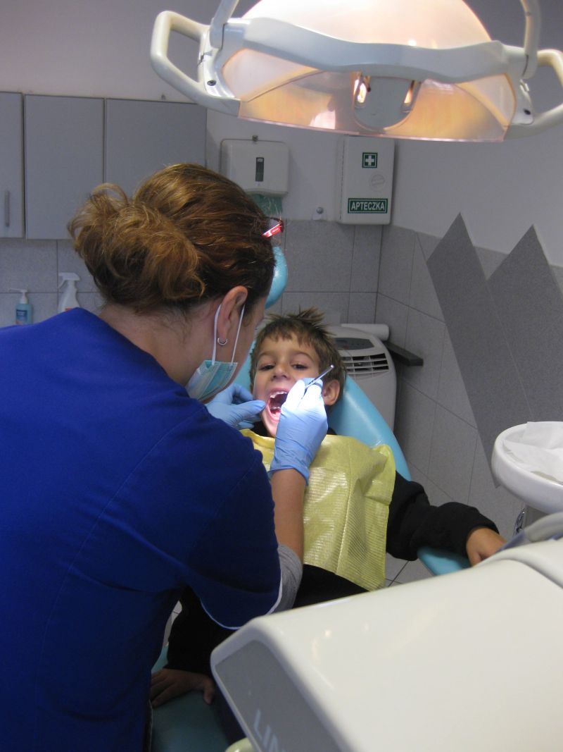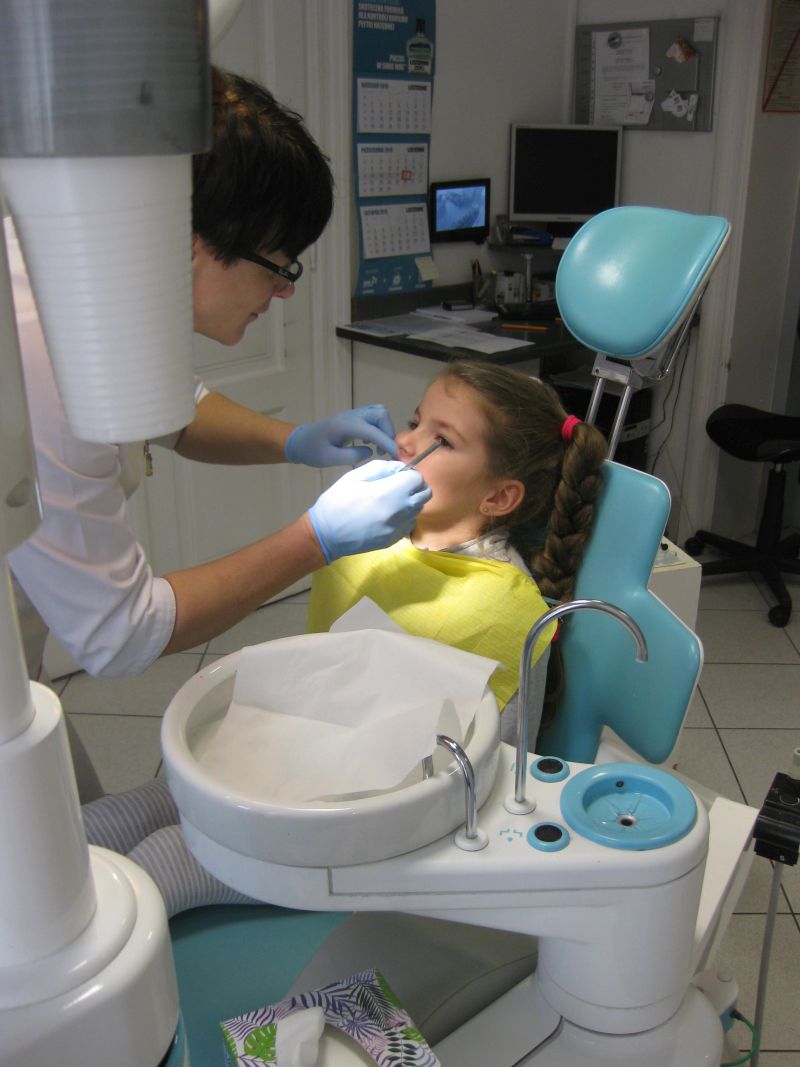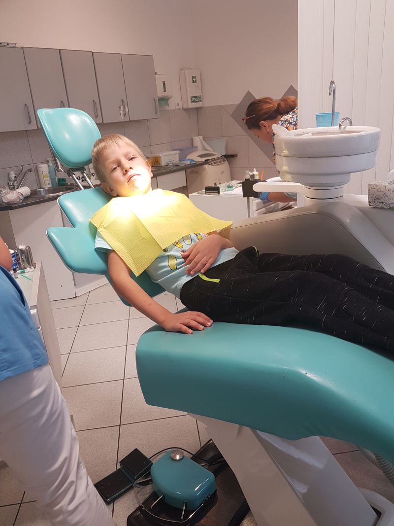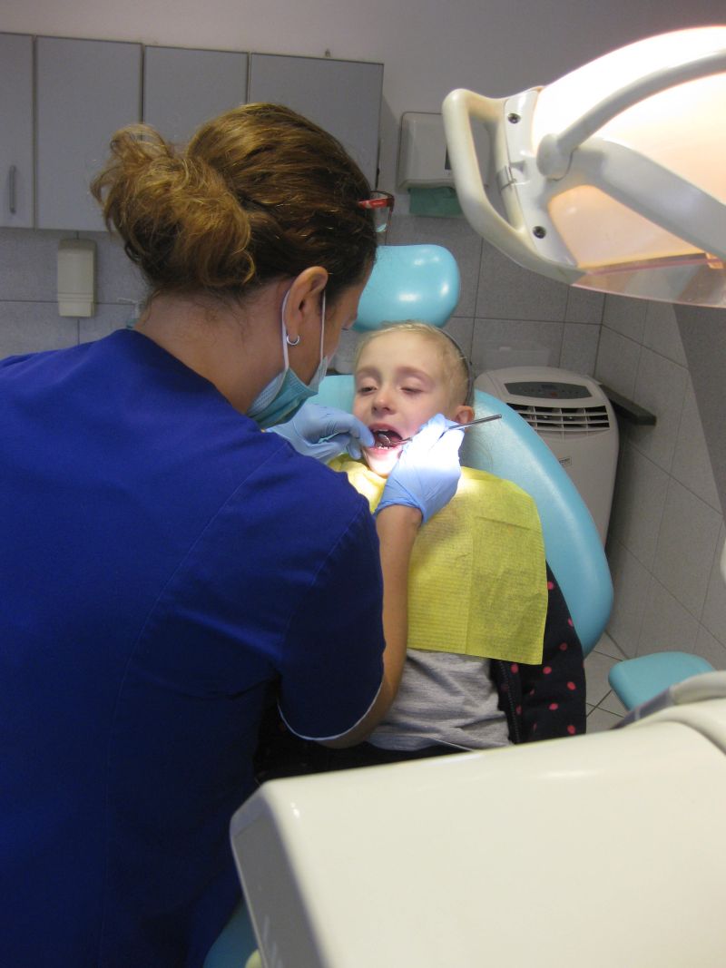 W październiku 2018 r grupy starszaków udały się do gabinetu stomatologicznego .Pani stomatolog podczas przeglądu małych ząbków,doradzała dzieciom jak należy o zęby dbać: jak i czym je czyścić ,jak płukać wodą i gdzie się udać gdyby z ząbkiem zaczęło się dziać coś niedobrego.Mali pacjenci uważnie słuchali rad i z uśmiechem wrócili do przedszkola.