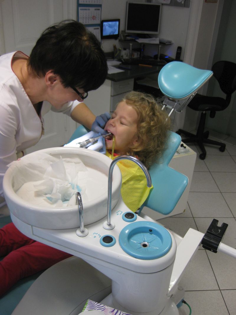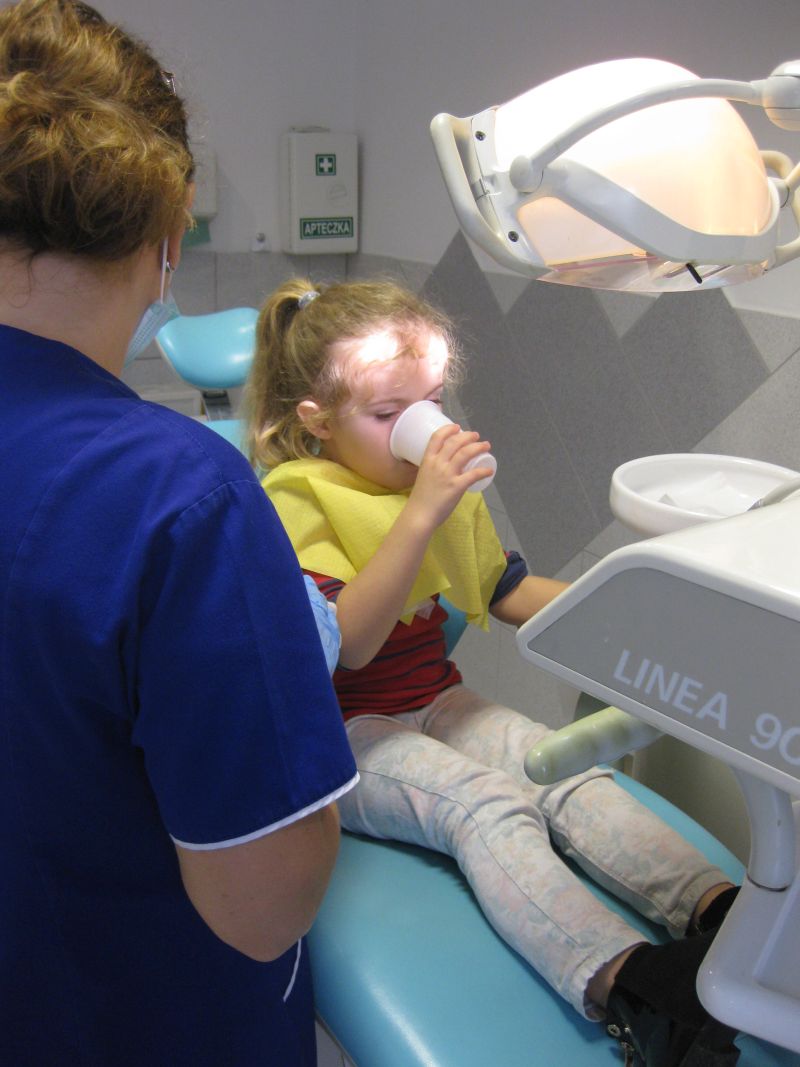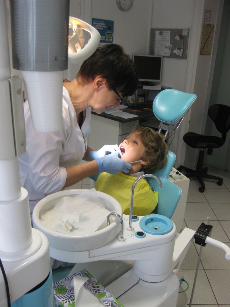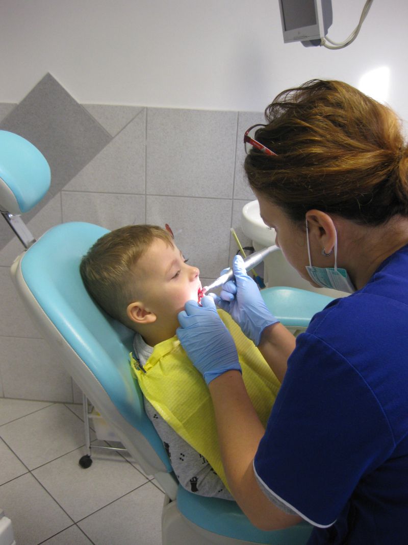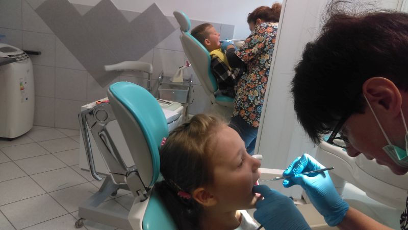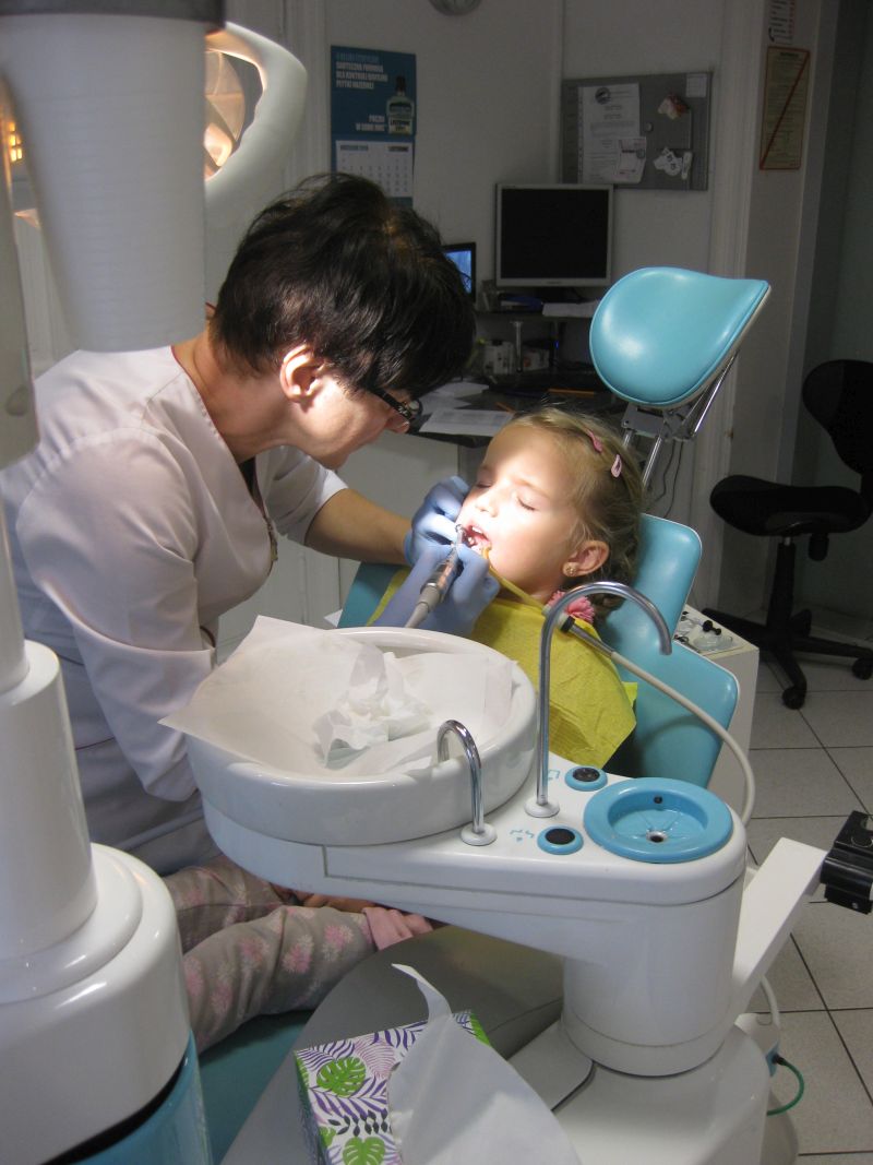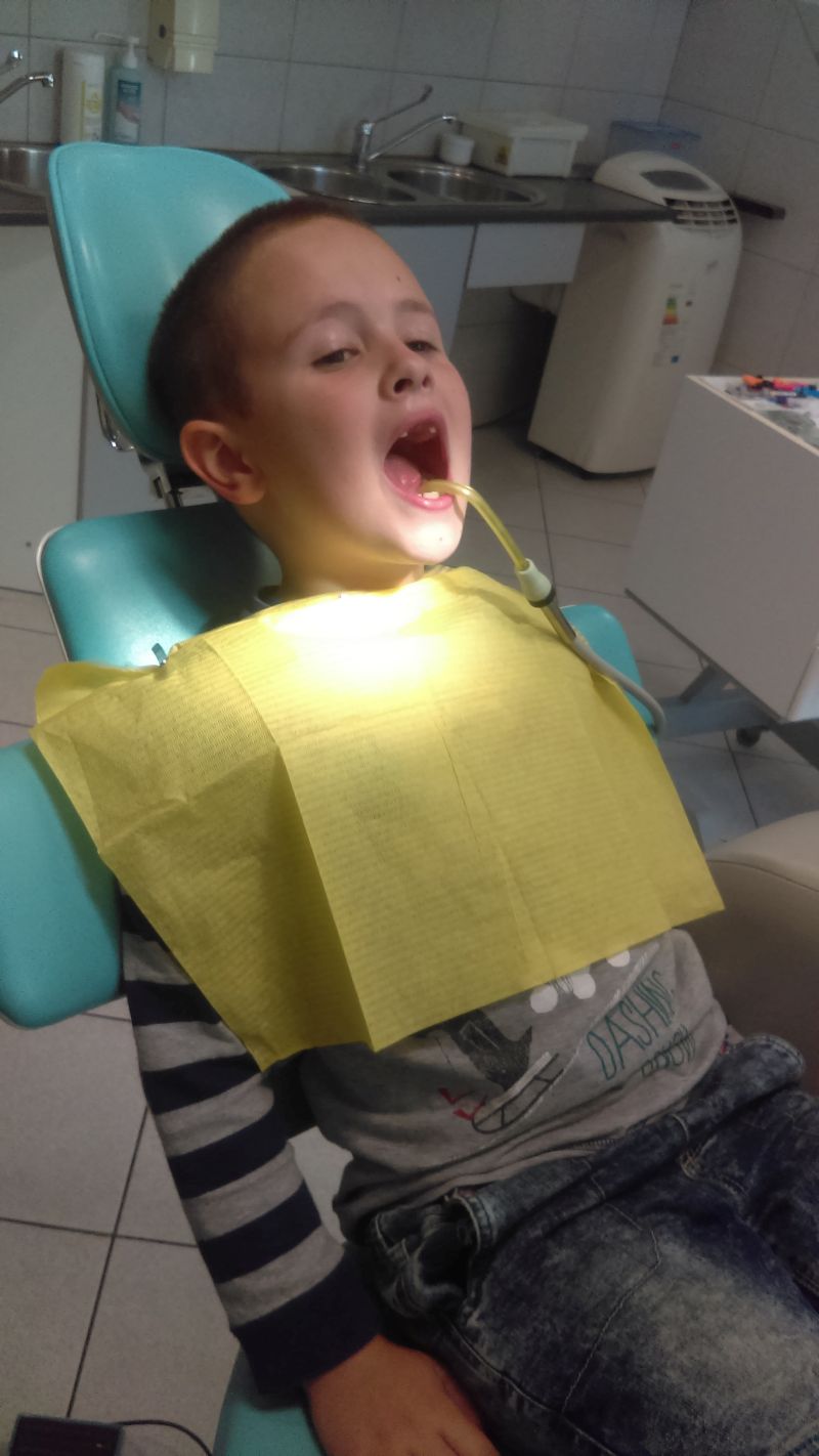 W październiku 2018 r grupy starszaków udały się do gabinetu stomatologicznego .Pani stomatolog podczas przeglądu małych ząbków,doradzała dzieciom jak należy o zęby dbać: jak i czym je czyścić ,jak płukać wodą i gdzie się udać gdyby z ząbkiem zaczęło się dziać coś niedobrego.Mali pacjenci uważnie słuchali rad i z uśmiechem wrócili do przedszkola.