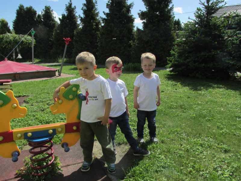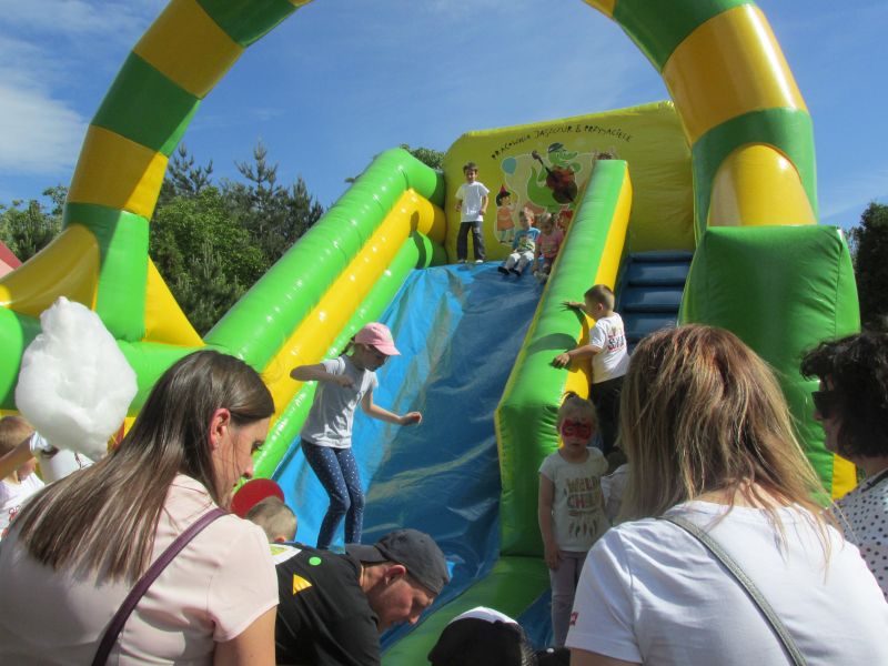 28 maja 2019r w ogrodzie naszego przedszkola odbył się Piknik Rodzinny.Przedszkolaki z wszystkich oddziałów zaprezentowały program artystyczny dla rodziców z okazji ich świąt.Po występie każdy z rodziców został obdarowany przygotowanym prezentem.Po części artystycznej dzieci wraz ze swoimi rodzicami mogły uczestniczyć w specjalnie dla nich przygotowanych atrakcjach i zabawach prowadzonych przez grupę Jaszczur & Przyjaciele,a były to różnego rodzaju: konkursy,malowanie twarzy,zabawa na dmuchanych zamkach, wystrzał cukierków z rakiety.W między czasie można było przekąsić coś smacznego np.kiełbaski z grila, gofry, upieczone przez rodziców ciasta, cukrową watę .Pogoda nam dopisała i humory też!