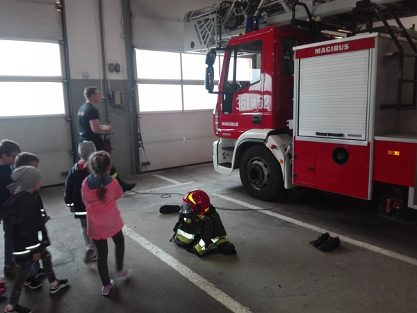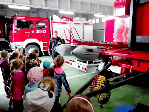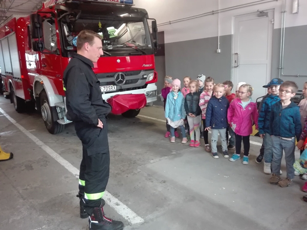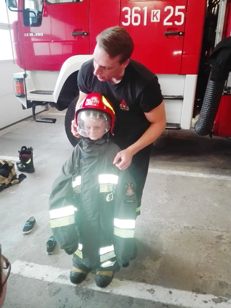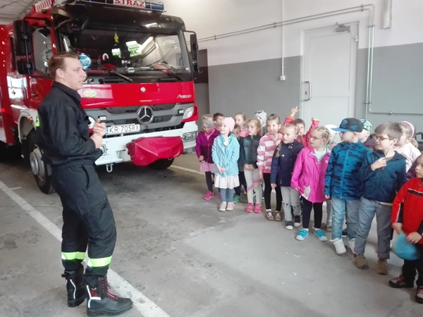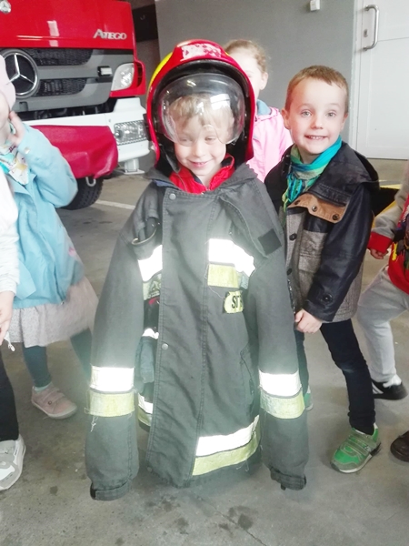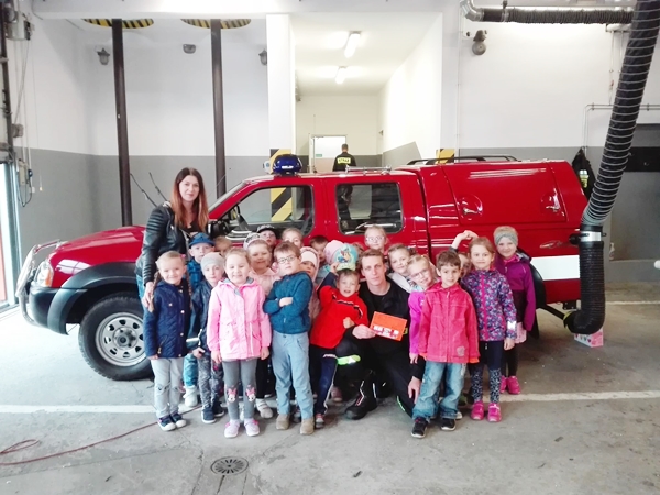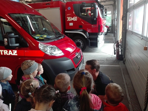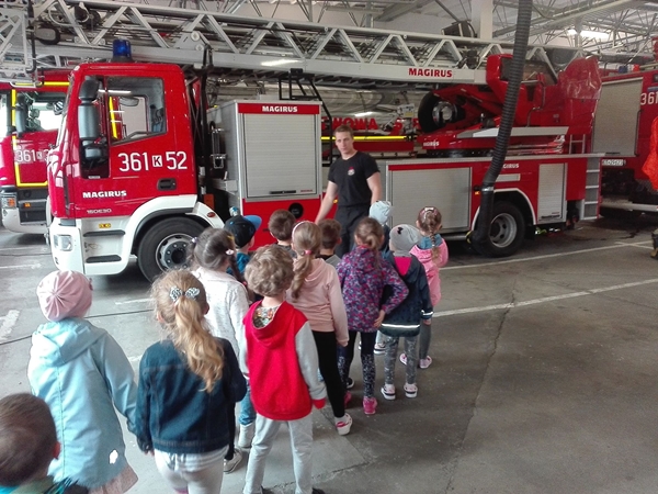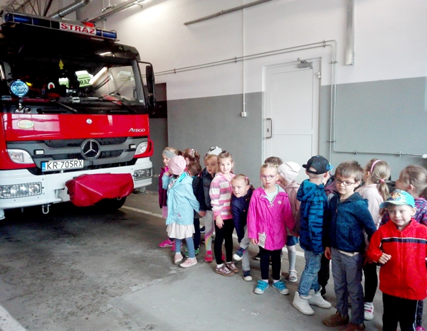 4 maja - dzień Św. Floriana -jest międzynarodowym Świętem Strażaków. Z szacunku do tego zawodu i oczywiście z ciekawości dzieci, 21 maja grupa SKRZATÓW postanowiła wybrać się na wycieczkę do Komendy Miejskiej Państwowej Straży Pożarnej w Tarnowie.Na miejscu powitali nas panowie strażacy, którzy zaprezentowali przeróżne wozy strażackie, sprzęt strażacki, umundurowanie. Każdy z przedszkolaków miał okazję wejść do wozu strażackiego oraz przymierzyć strój strażaka. Na koniec przedszkolaki wręczyły strażakom własnoręcznie wykonaną laurkę z okazji ich święta.
