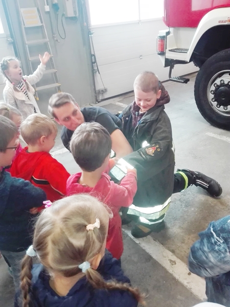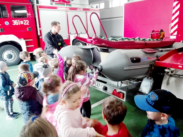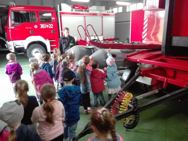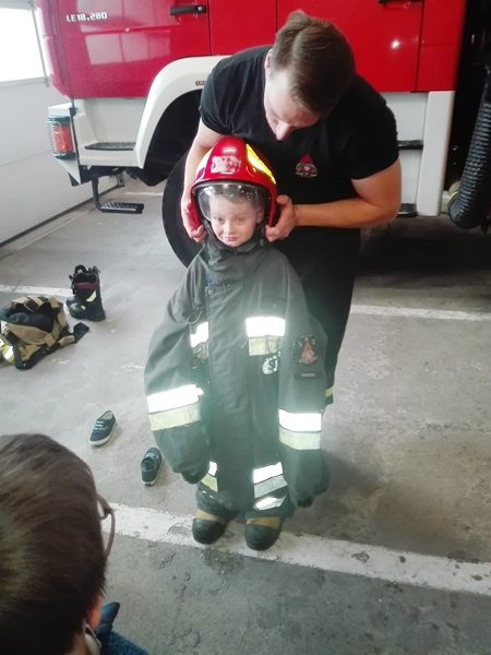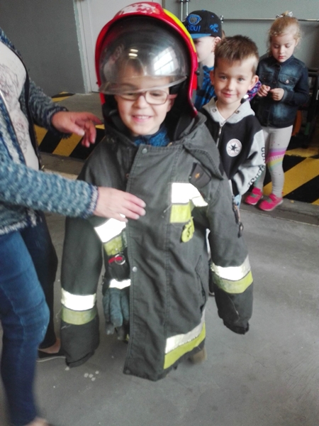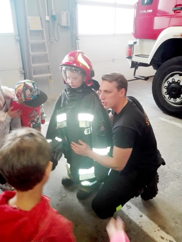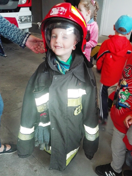 4 maja - dzień Św. Floriana -jest międzynarodowym Świętem Strażaków. Z szacunku do tego zawodu i oczywiście z ciekawości dzieci, 21 maja grupa SKRZATÓW postanowiła wybrać się na wycieczkę do Komendy Miejskiej Państwowej Straży Pożarnej w Tarnowie.Na miejscu powitali nas panowie strażacy, którzy zaprezentowali przeróżne wozy strażackie, sprzęt strażacki, umundurowanie. Każdy z przedszkolaków miał okazję wejść do wozu strażackiego oraz przymierzyć strój strażaka. Na koniec przedszkolaki wręczyły strażakom własnoręcznie wykonaną laurkę z okazji ich święta.