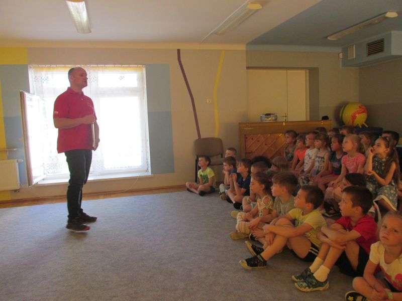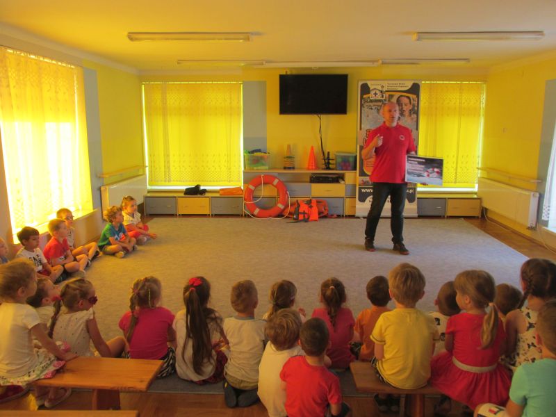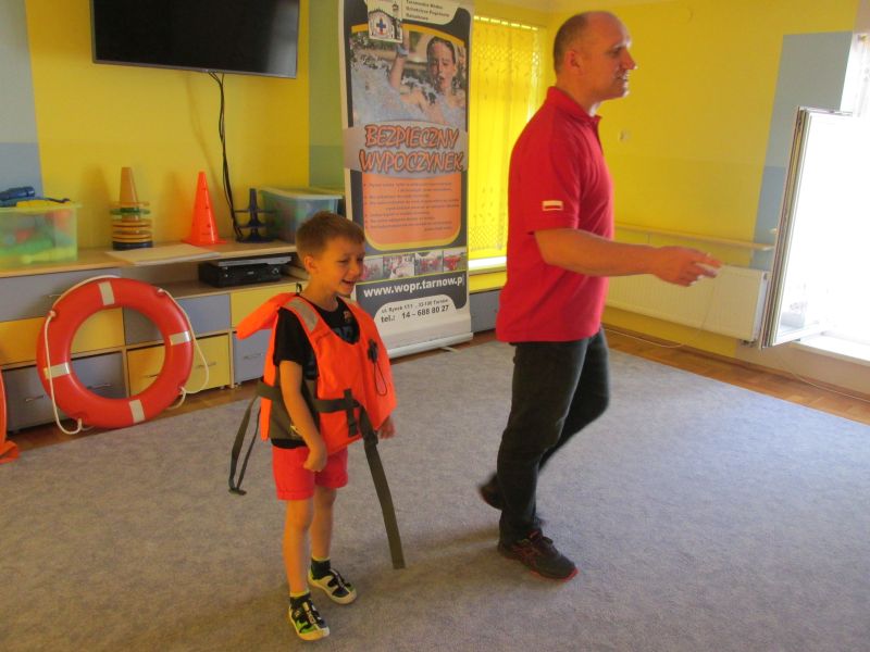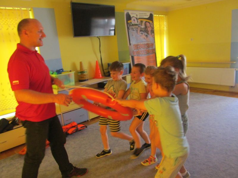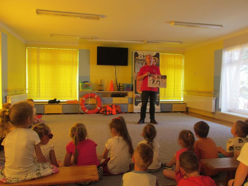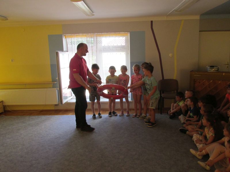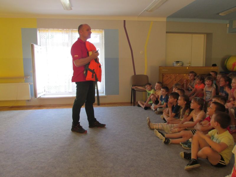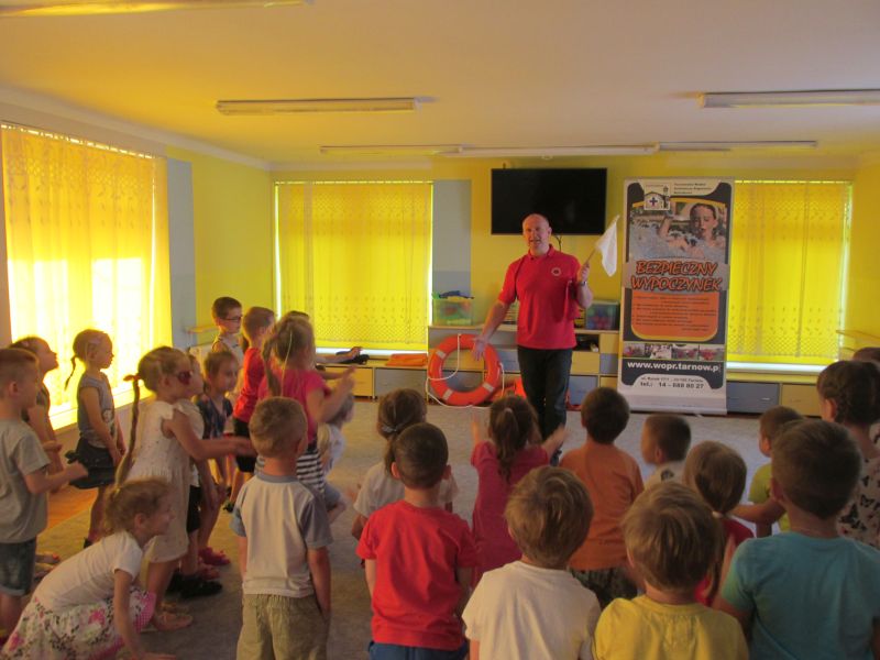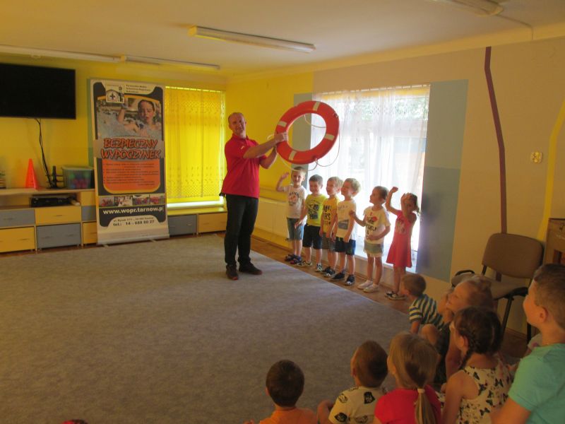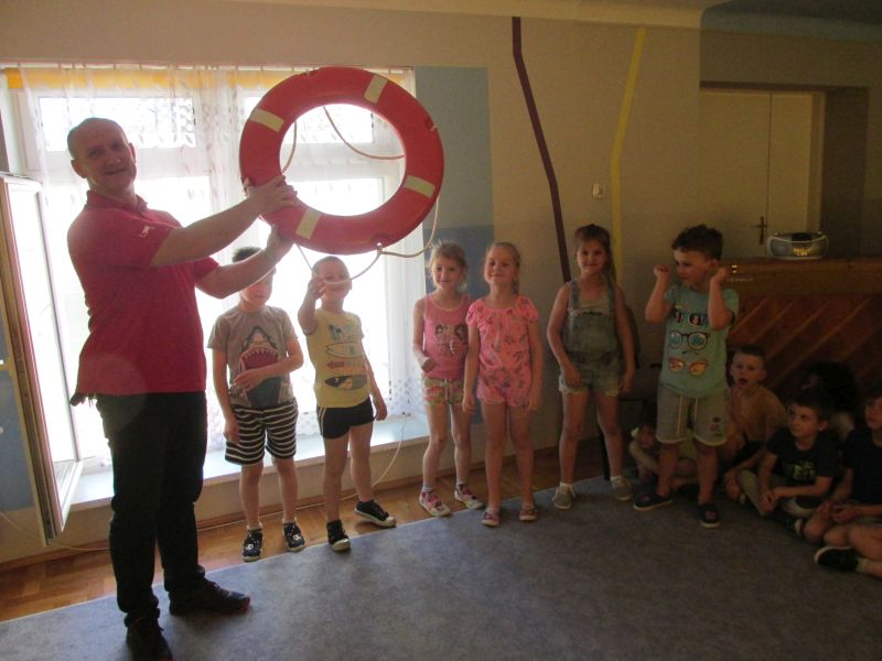 6 czerwca 2019r przedszkolaki uczestniczyły w spotkaniu z panem ratownikiem WOPR.Dzieci dowiedziały się w jaki sposób zachowywać się bezpiecznie nad wodą.