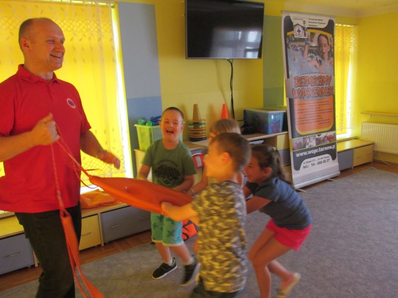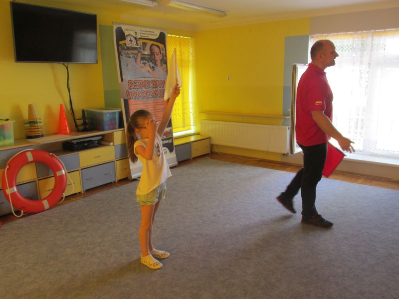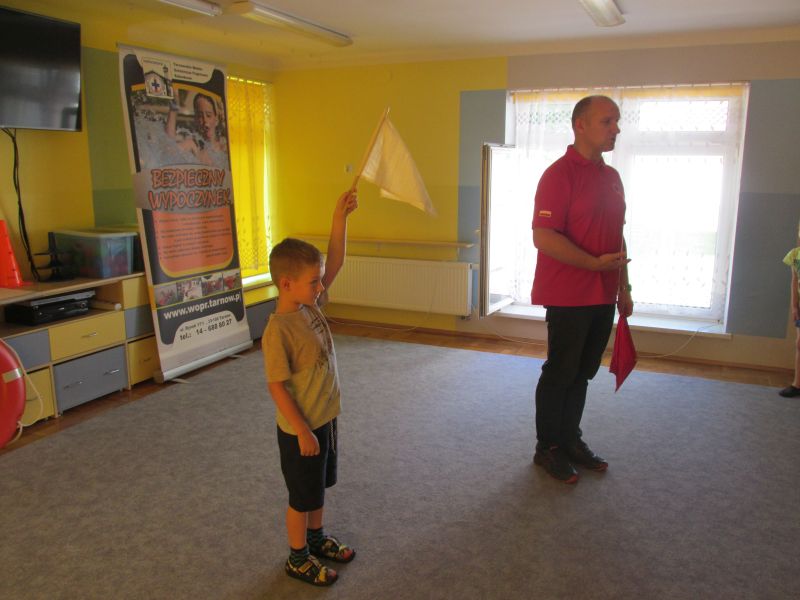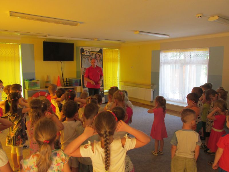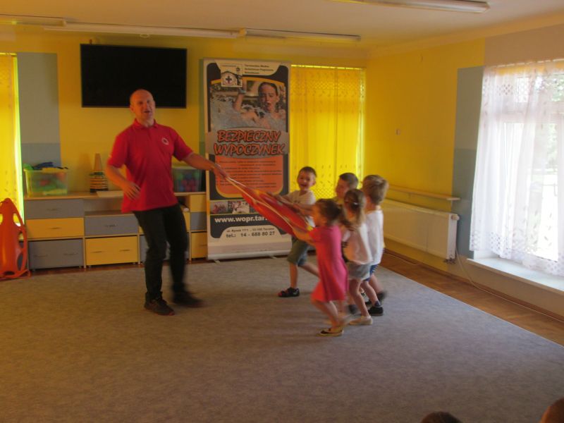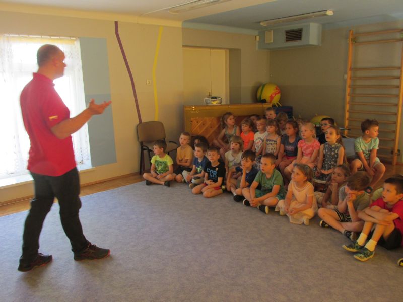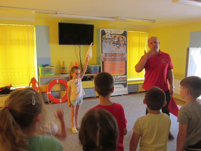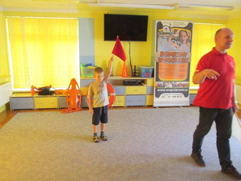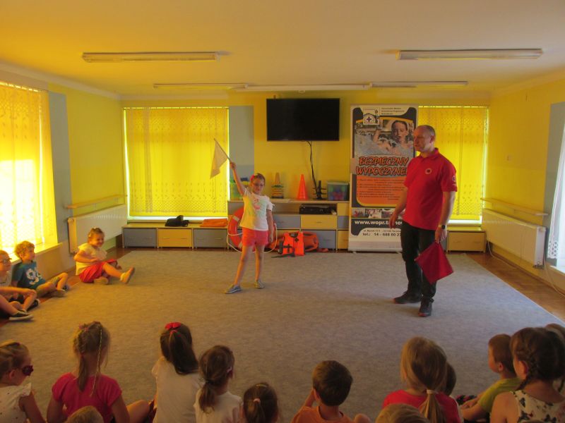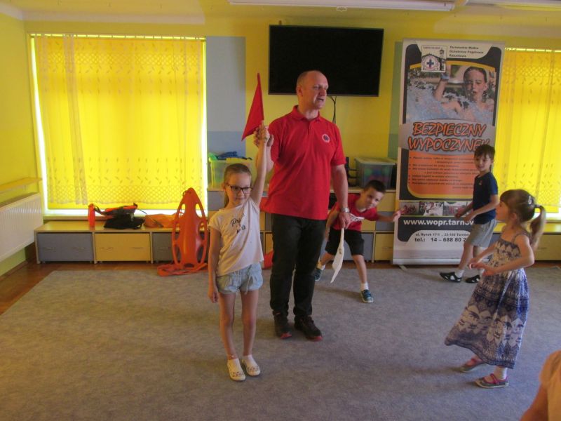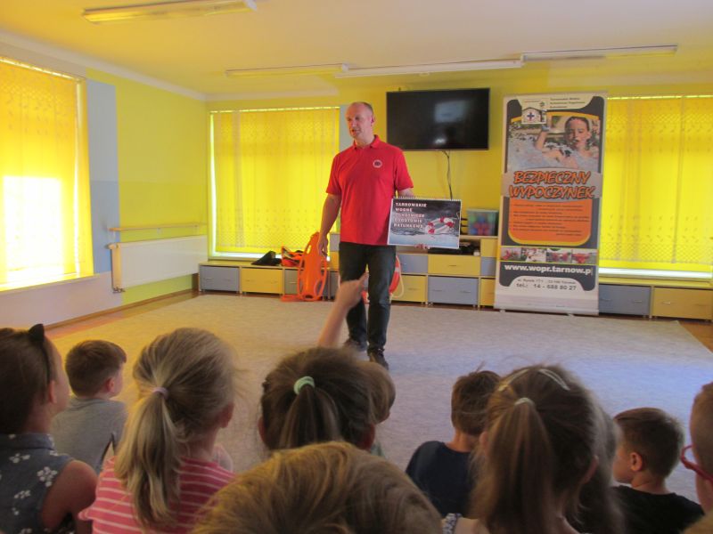 6 czerwca 2019r przedszkolaki uczestniczyły w spotkaniu z panem ratownikiem WOPR.Dzieci dowiedziały się w jaki sposób zachowywać się bezpiecznie nad wodą.