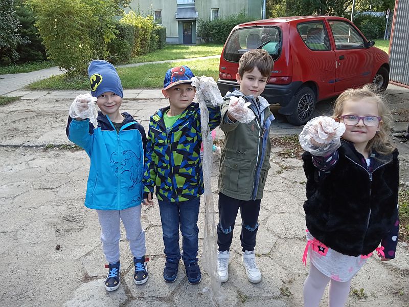 Trochę nam smutno, że nasza planeta Ziemia jest zanieczyszczona i zaśmiecona. Wiemy, że jej los leży w naszych rękach ( dużych i małych). Dlatego przyłączyliśmy się do akcji „Sprzątania świata”. My przedszkolaki rozumiemy, że jeżeli nie będziemy śmiecić, to nie będziemy musieli sprzątać. Dobrze by było gdyby wszyscy o tym pamiętali.