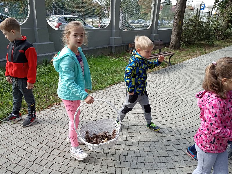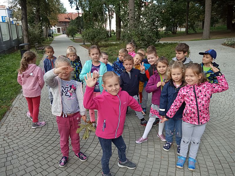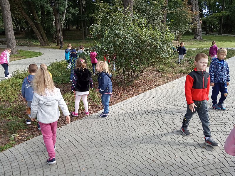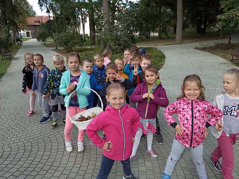 Gdzie można spotkać jesień?- W parku.Dlatego całą grupą wyruszyliśmy na poszukiwania do Parku Strzeleckiego.Oglądaliśmy drzewa, krzewy, zbieraliśmy skarby jesieni i wypatrywaliśmy zwierząt. Chyba byliśmy grzeczni, bo na spotkanie z nami wyszły dwie wiewiórki, które przez pewien czas podążały za nami.Wycieczka bardzo nam się podobała. Może jeszcze tu wrócimy.