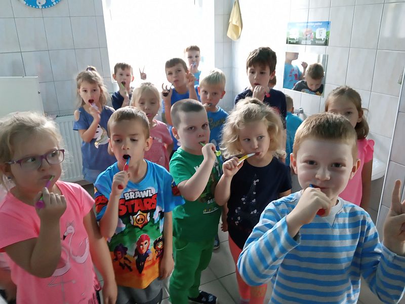 Piosenka, którą śpiewamy w przedszkolu przypomina nam - że jeśli chcemy zdrowe zęby mieć musimy tylko chcieć.Dlatego codziennie sumiennie sięgamy po nasze szczoteczki i dokładnie czyścimy zęby by były piękne i zdrowe.