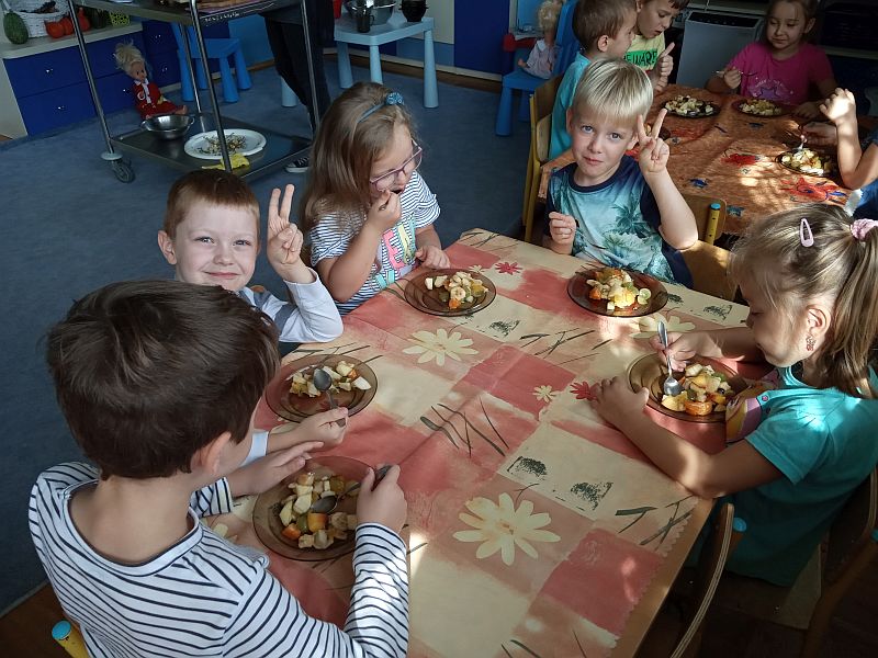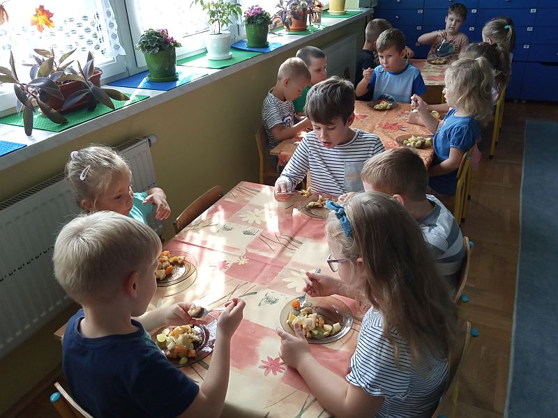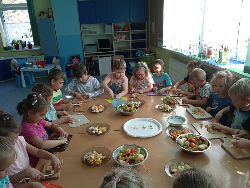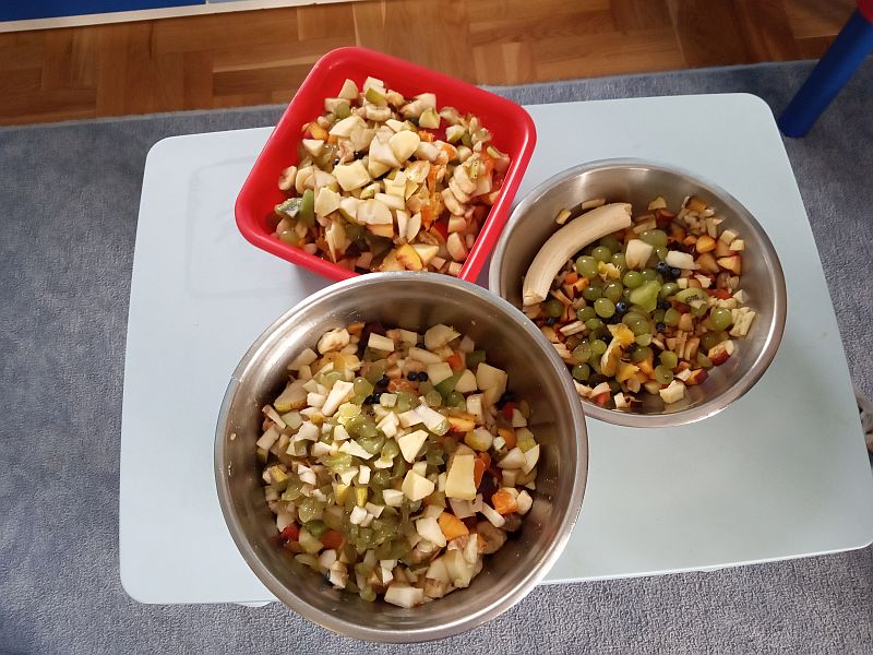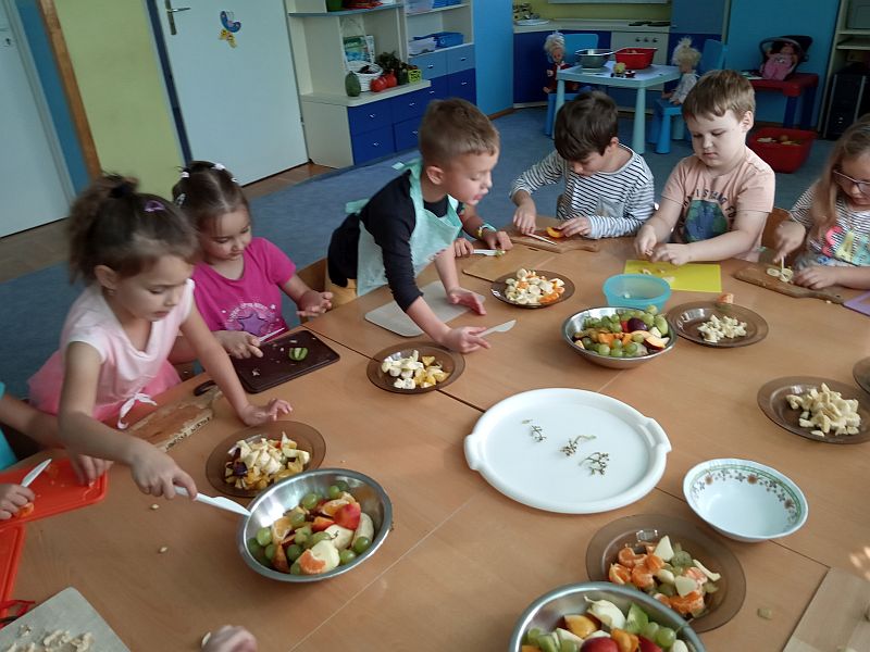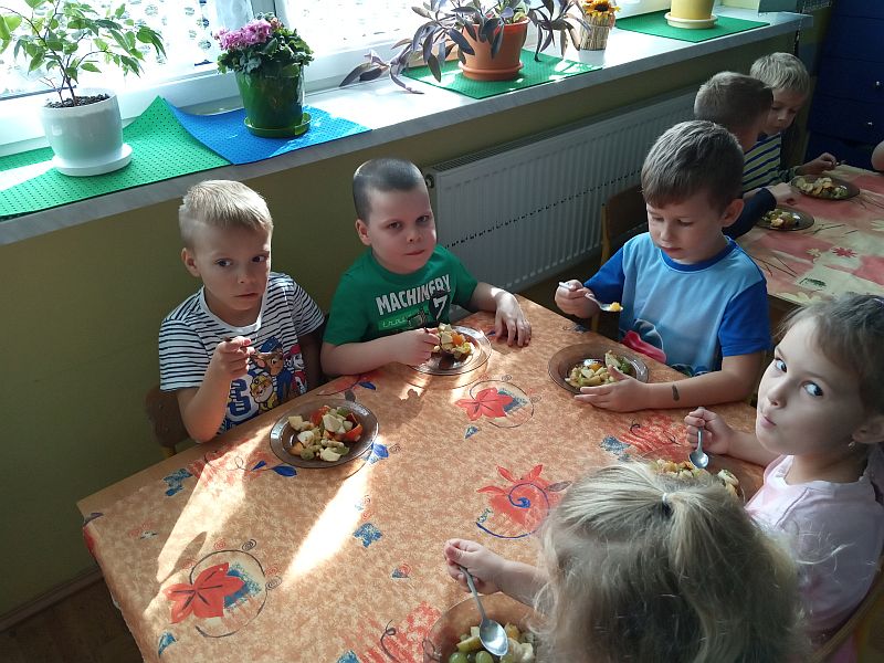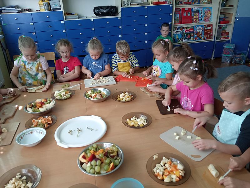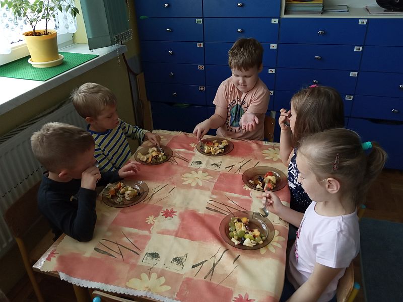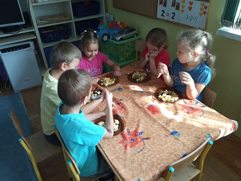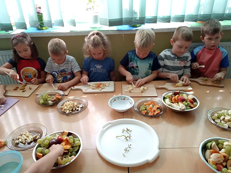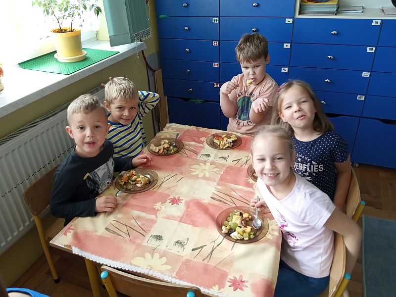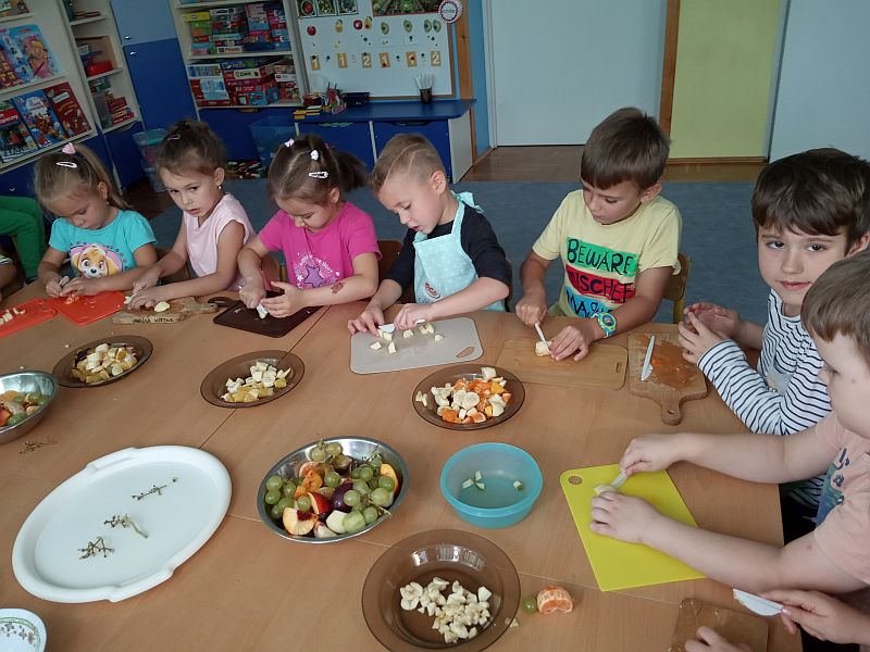 Wszyscy dobrze wiemy, że owoce są bardzo zdrowe a najlepiej smakują w sałatce owocowej. Jeśli tę sałatkę wykonamy sami to smakują podwójnie wyśmienicie. Dlatego podjęliśmy się tego trudnego zadania i przystąpiliśmy ochoczo do pracy. Efekt okazał się wyjątkowo smakowity. Żałujcie, że nie mogliście degustować razem z nami.