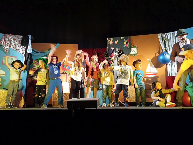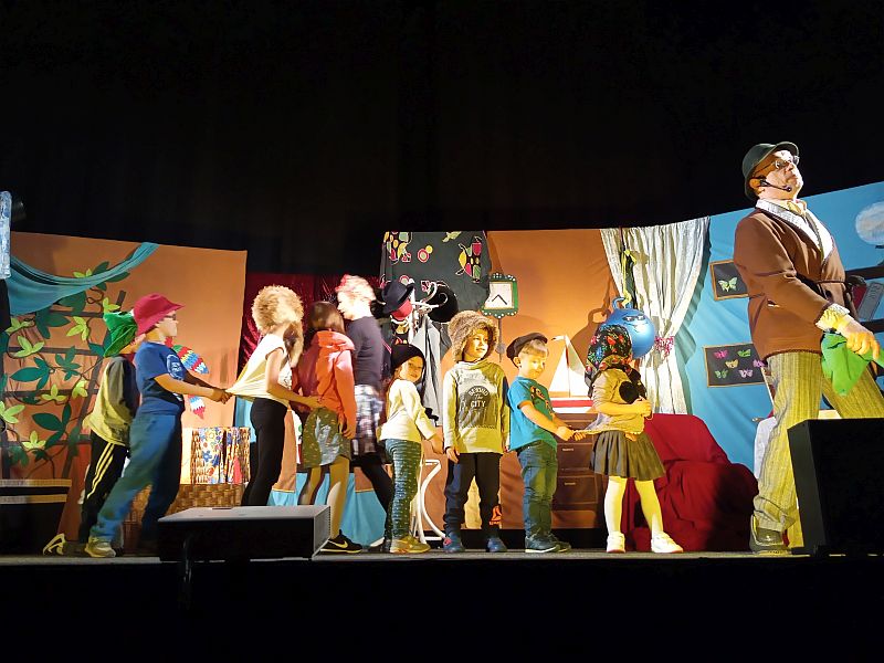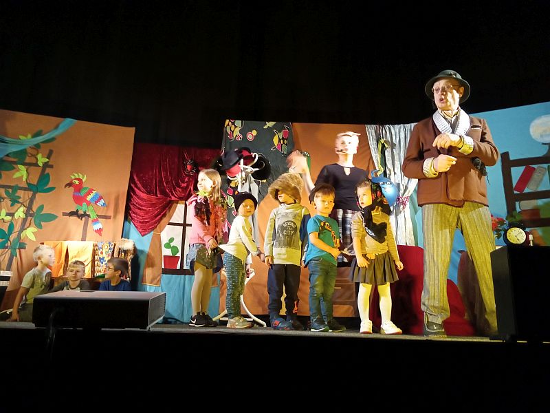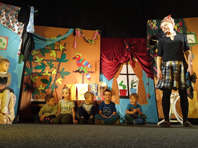 21 października 2019r przedszkolaki z naszego przedszkola wybrały się do kina „Marzenie” na spektakl pt.“Szalone bajeczki z Dziadunia Teczki”.W przedstawieniu wykorzystano wiersze Jana Brzechwy i Juliana Tuwima. Bajkowa sceneria i znakomita,żartobliwa gra aktorów sprawiły, że przez cały czas słychać było śmiech małych widzów podczas spektaklu. Dodatkową atrakcją dla dzieci było zaproszenie ich na scenę i wzięcie udziału wspólnie z aktorami w inscenizacji wiersza „Rzepka”.