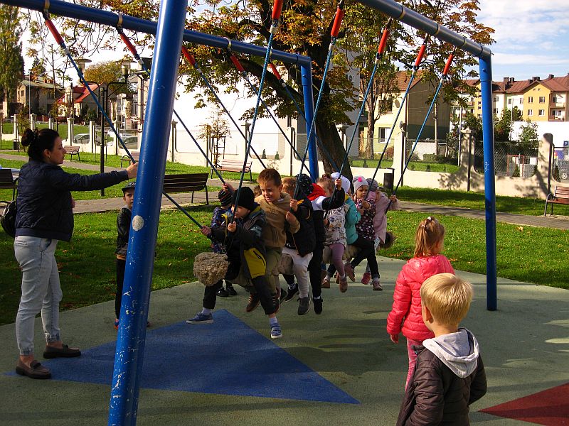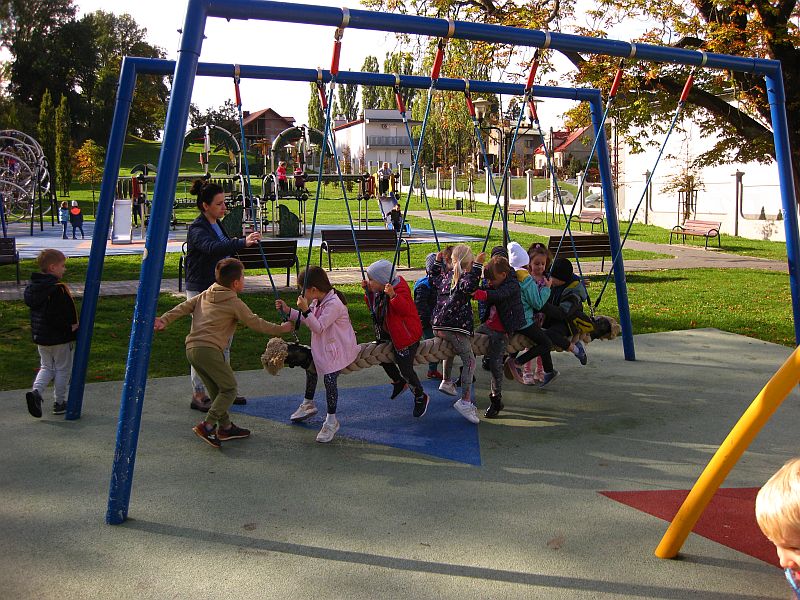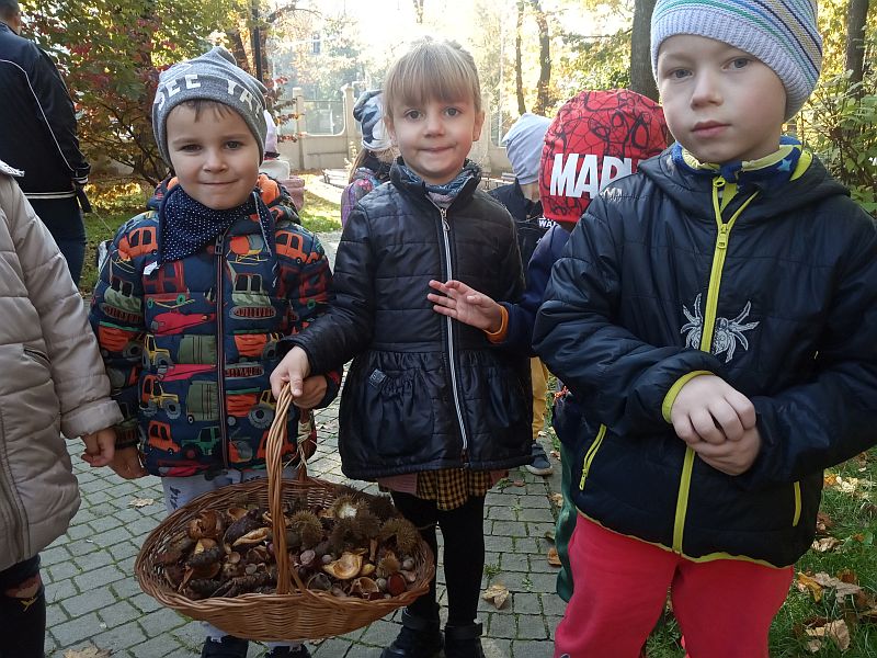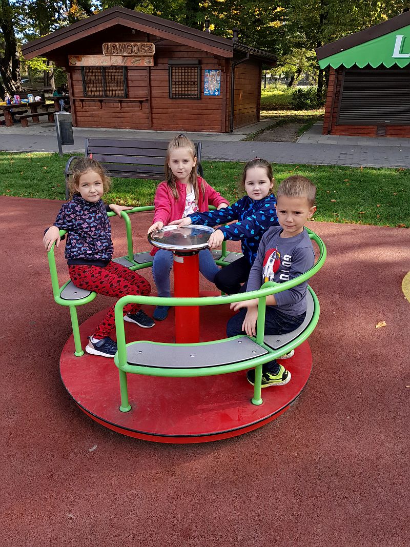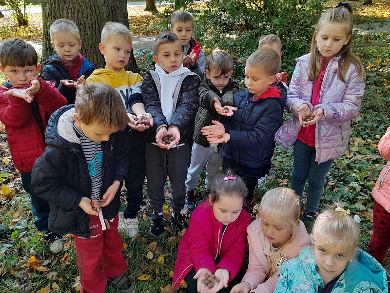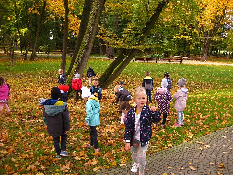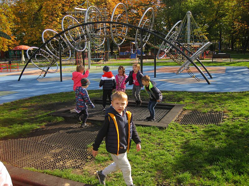W ciepły, słoneczny dzień jesieni wybraliśmy się do Parku Strzeleckiego. Obserwowaliśmy zmiany jakie zachodzą w przyrodzie o tej porze roku. Poszukiwaliśmy jesiennych skarbów: kasztanów, żołędzi,kolorowych liści. Piękna pogoda zachęciła nas także do wspólnych zabaw w Ogródku Jordanowskim.