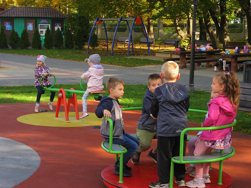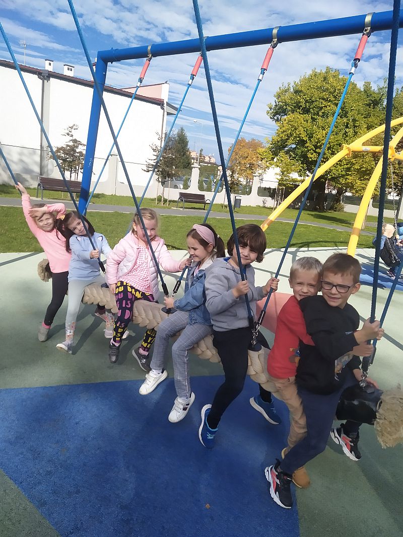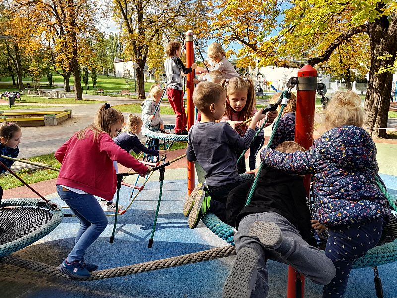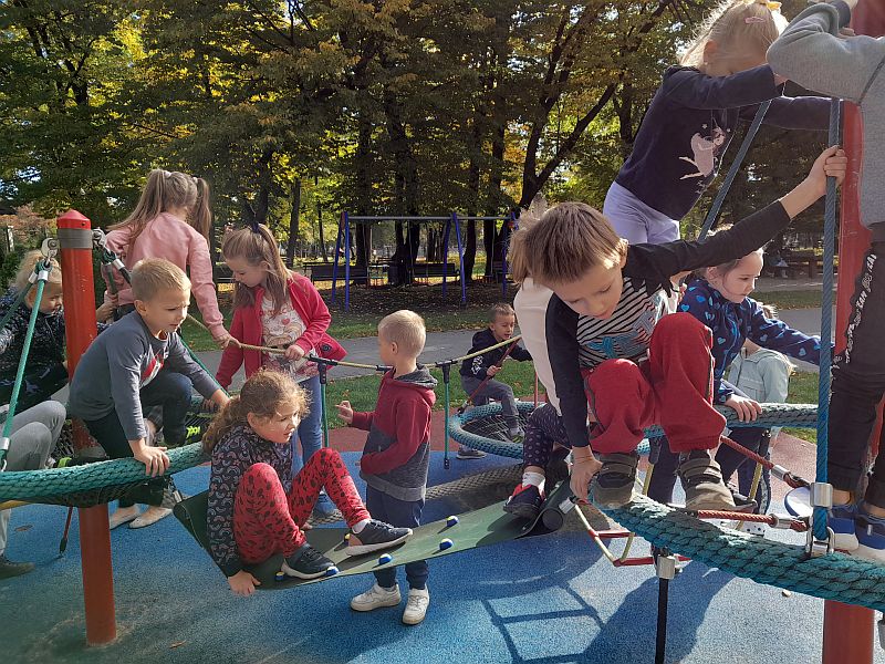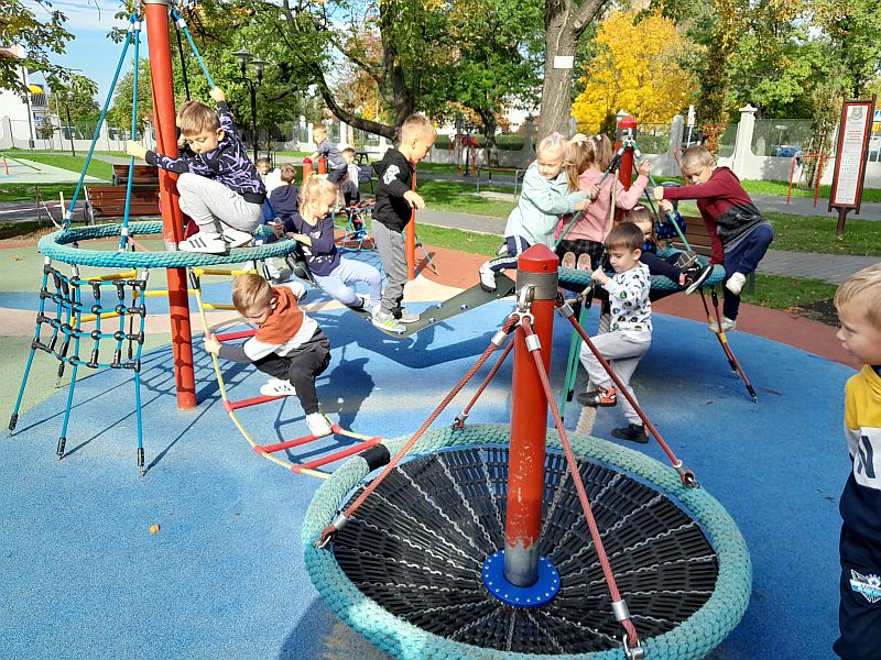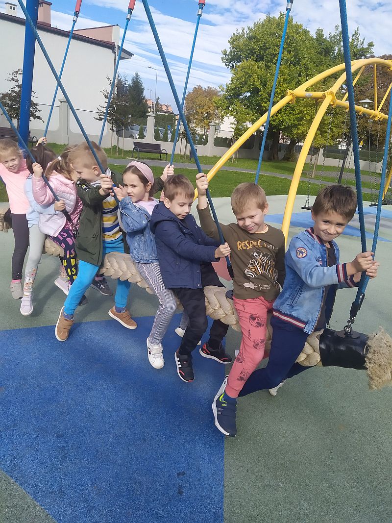 W ciepły, słoneczny dzień jesieni wybraliśmy się do Parku Strzeleckiego. Obserwowaliśmy zmiany jakie zachodzą w przyrodzie o tej porze roku. Poszukiwaliśmy jesiennych skarbów: kasztanów, żołędzi,kolorowych liści. Piękna pogoda zachęciła nas także do wspólnych zabaw w Ogródku Jordanowskim.