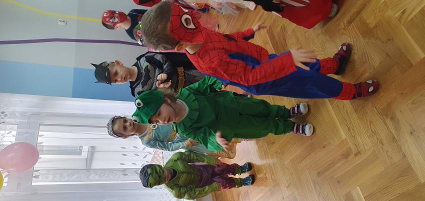 Przedszkolaki świetnie się bawiły przy wesołej i skocznej muzyce. Na dziecięcych twarzach malował się uśmiech,który nie znikał mimo chwilowego zmęczenia.
