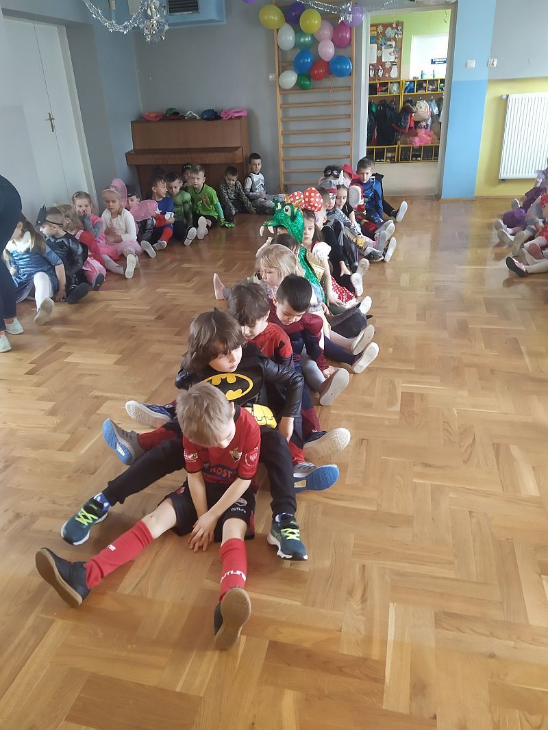 Przedszkolaki świetnie się bawiły przy wesołej i skocznej muzyce. Na dziecięcych twarzach malował się uśmiech,który nie znikał mimo chwilowego zmęczenia.