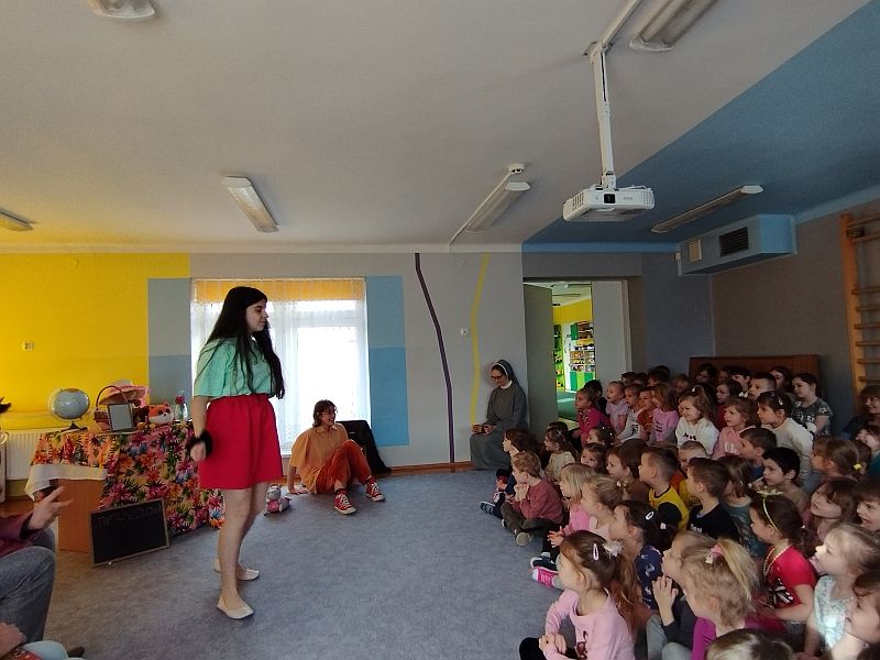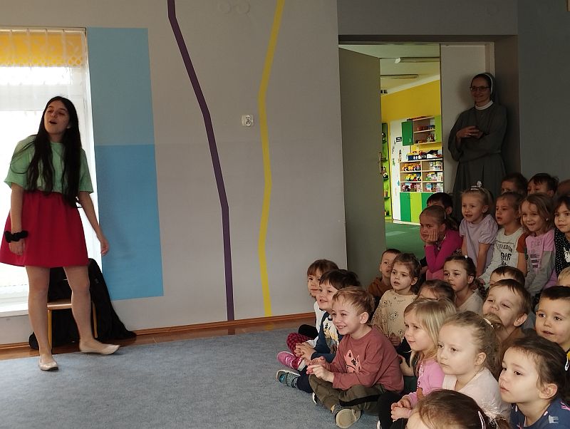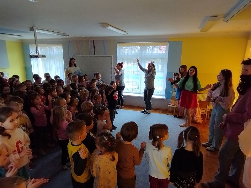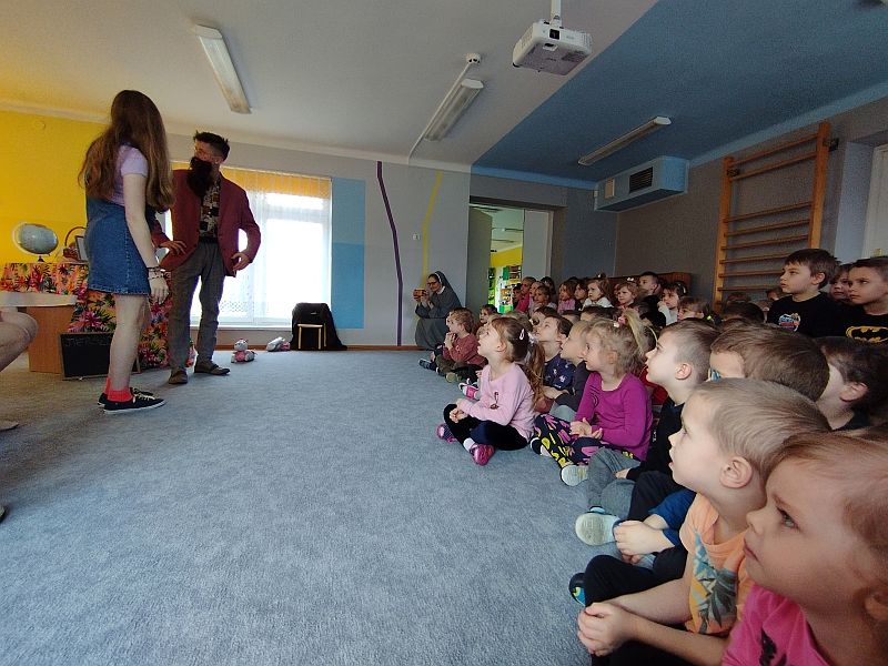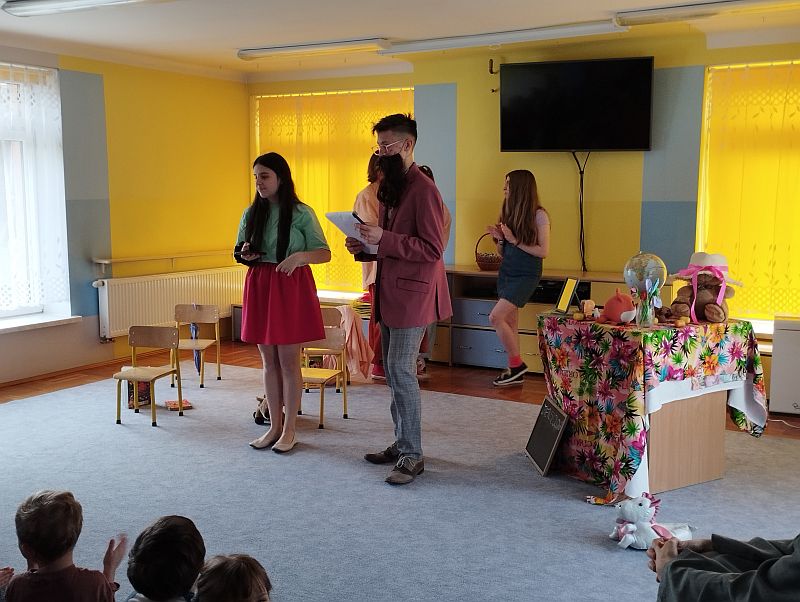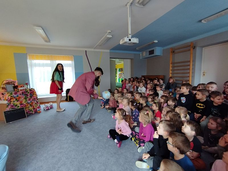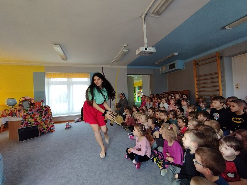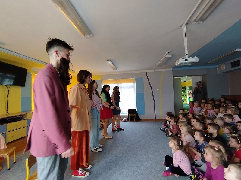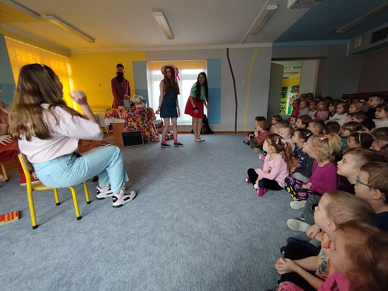 27 lutego 2023r do naszego przedszkola zagościli uczniowie z I Liceum Ogólnokształcącego w Tarnowie .Młodzież w zabawny sposób przedstawiała krótkie scenki do wybranych wierszy J.Brzechwy, zachęcając w ten sposób dzieci do czytania książek.