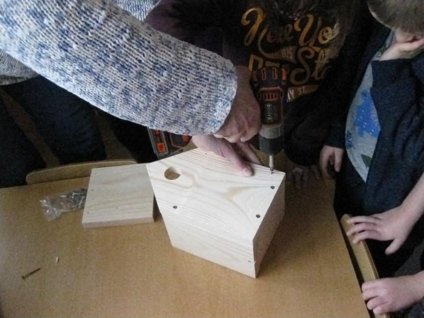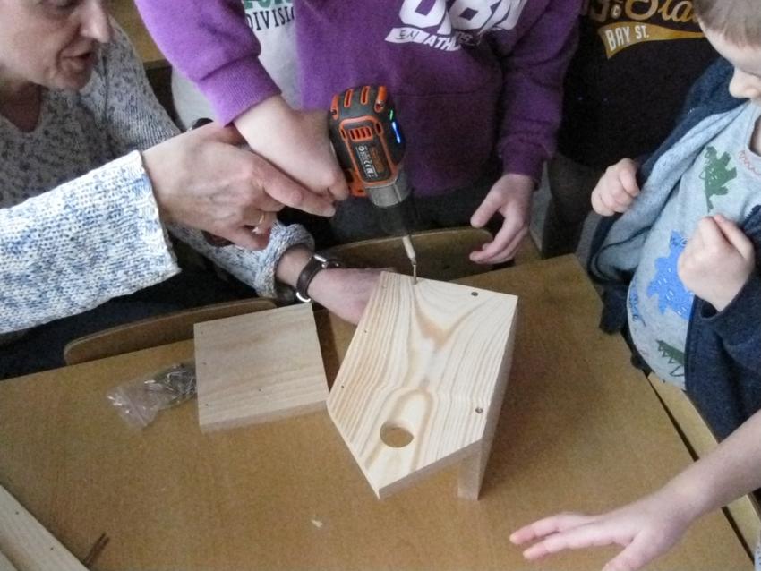 W ramach konkursu -Zaprośmy ptaki do Tarnowa- organizowanego przez Urząd Miasta Tarnowa dzieci z grupy Jeżyków , z wielkim entuzjazmem podjęły się pracy wykonania budki lęgowej dla naszych fruwających,małych przyjaciół.Każdy majsterkowicz z wielką ochotą brał udział w skręcaniu elementów drewnianego ptasiego domku.Pan konserwator zawiesił gotową budkę na drzewie w naszym ogrodzie. Teraz będziemy wyczekiwać pierwszych lokatorów w naszej wspólnie wykonanej budce lęgowej.