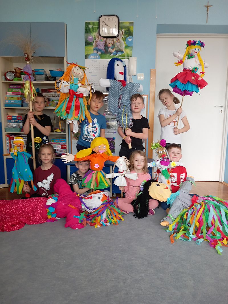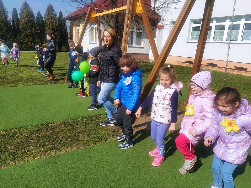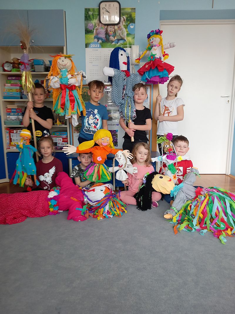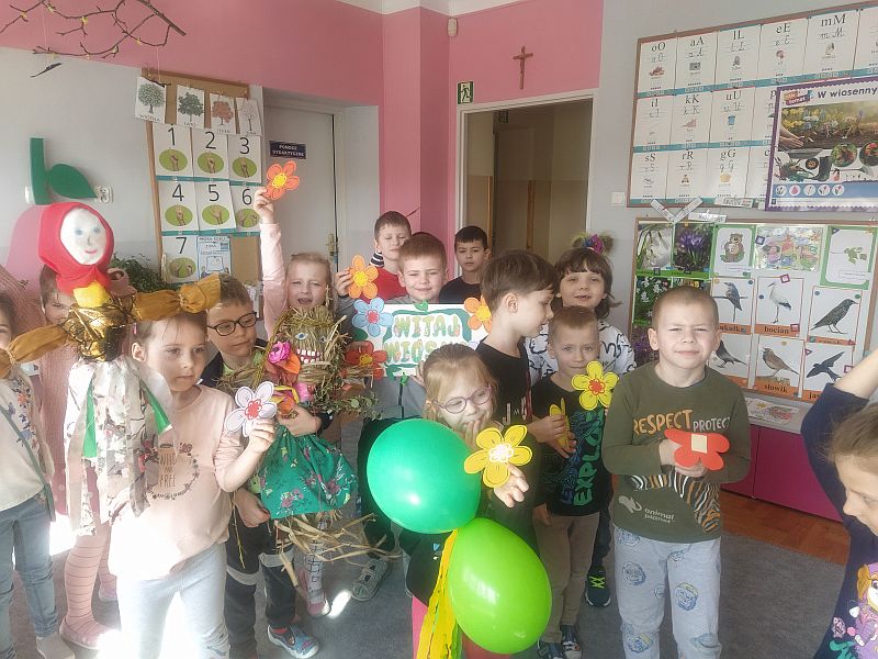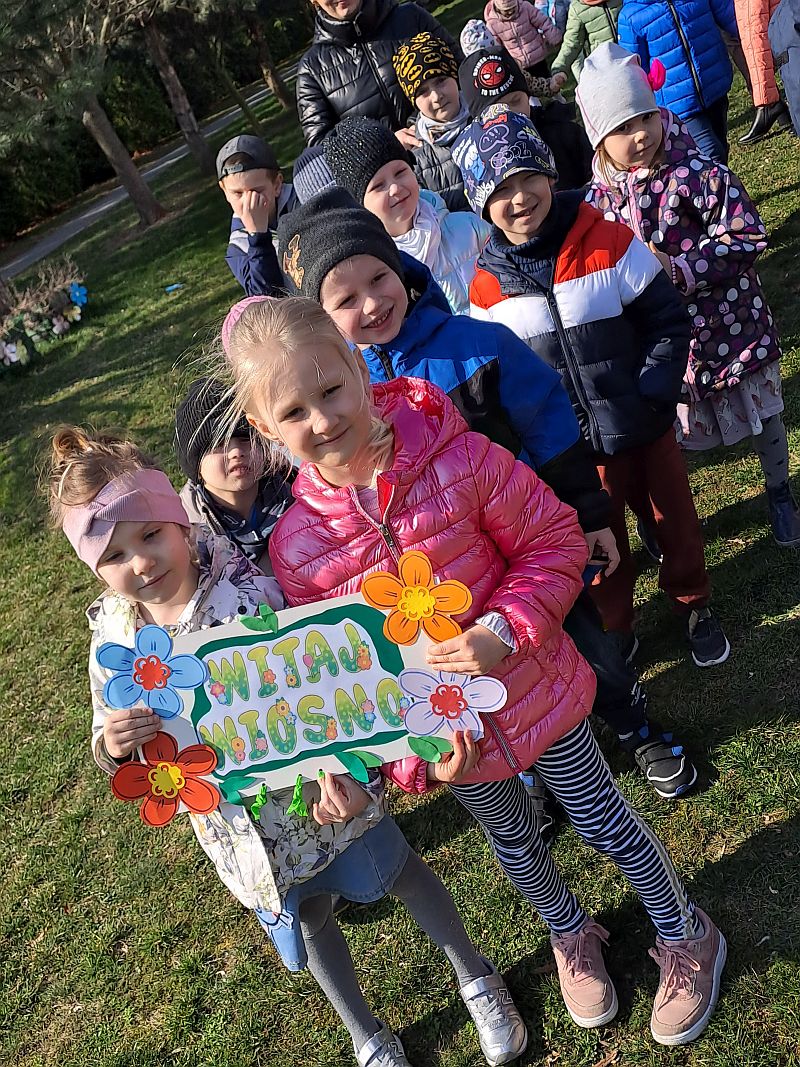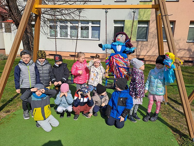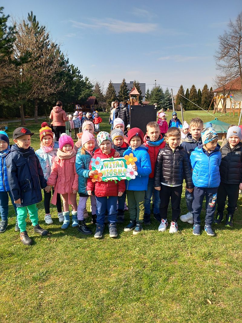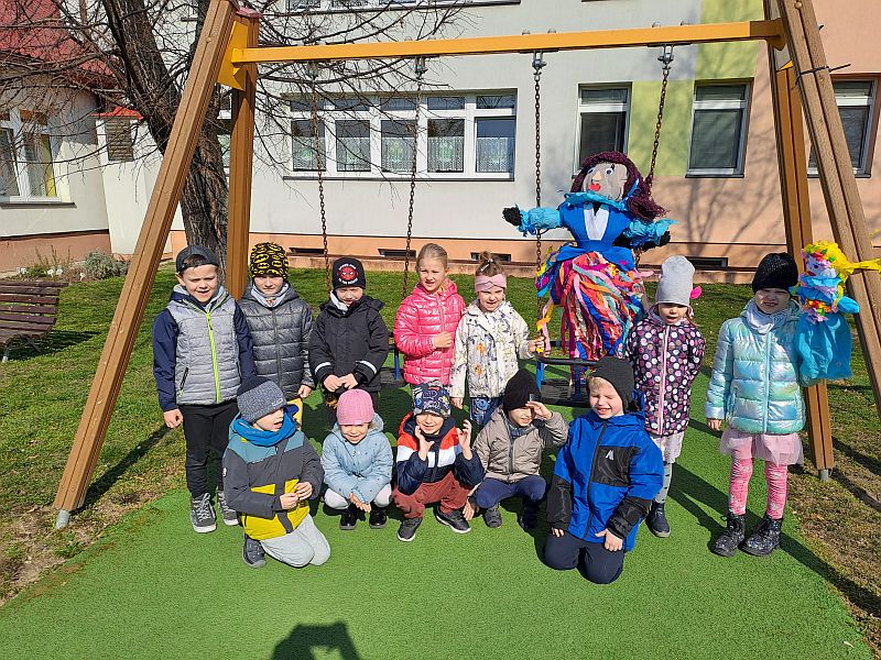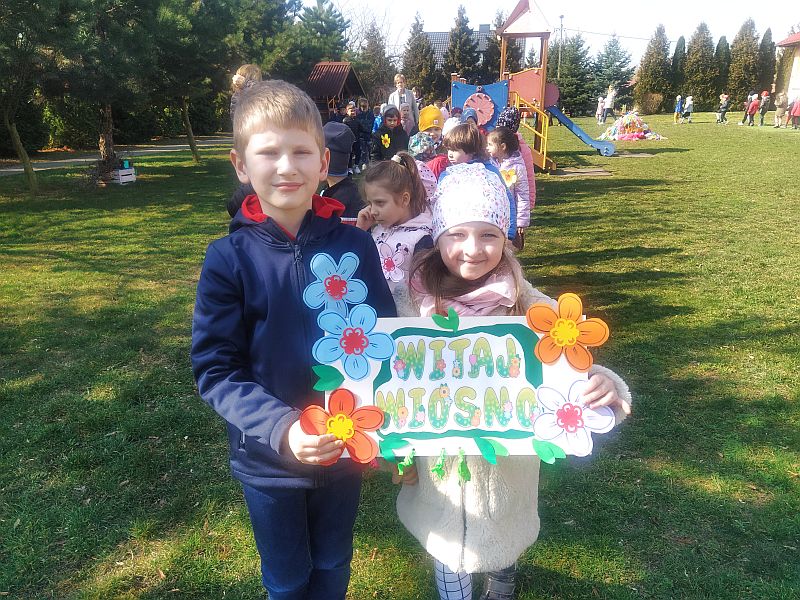 Pierwszego dnia Wiosny dzieci z naszego przedszkola z przygotowanymi Marzannami żegnały panią Zimę. Wspólny śpiew wiosennych piosenek sprawiał ,że promienie słońca zrobiły się cieplejsze , w naszych serduszkach zagościła radość ,a na twarzach promienny uśmiech.