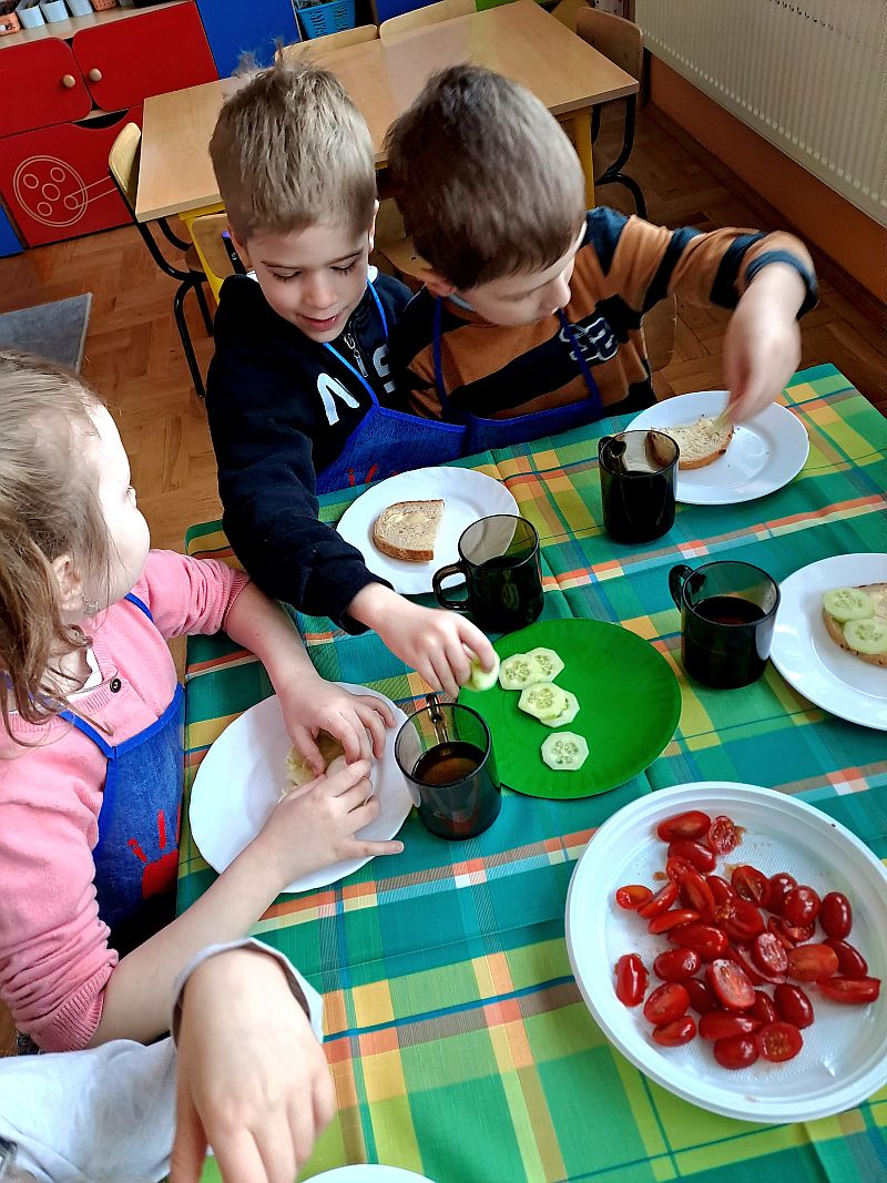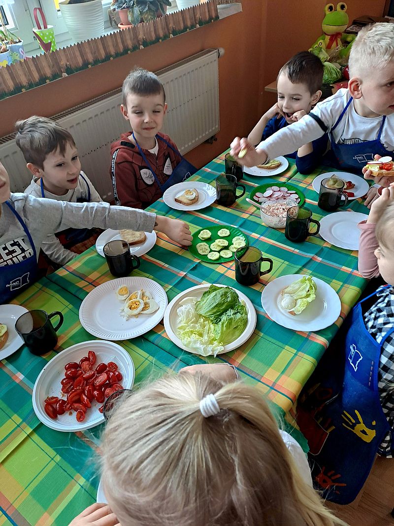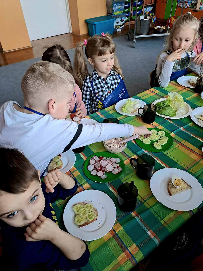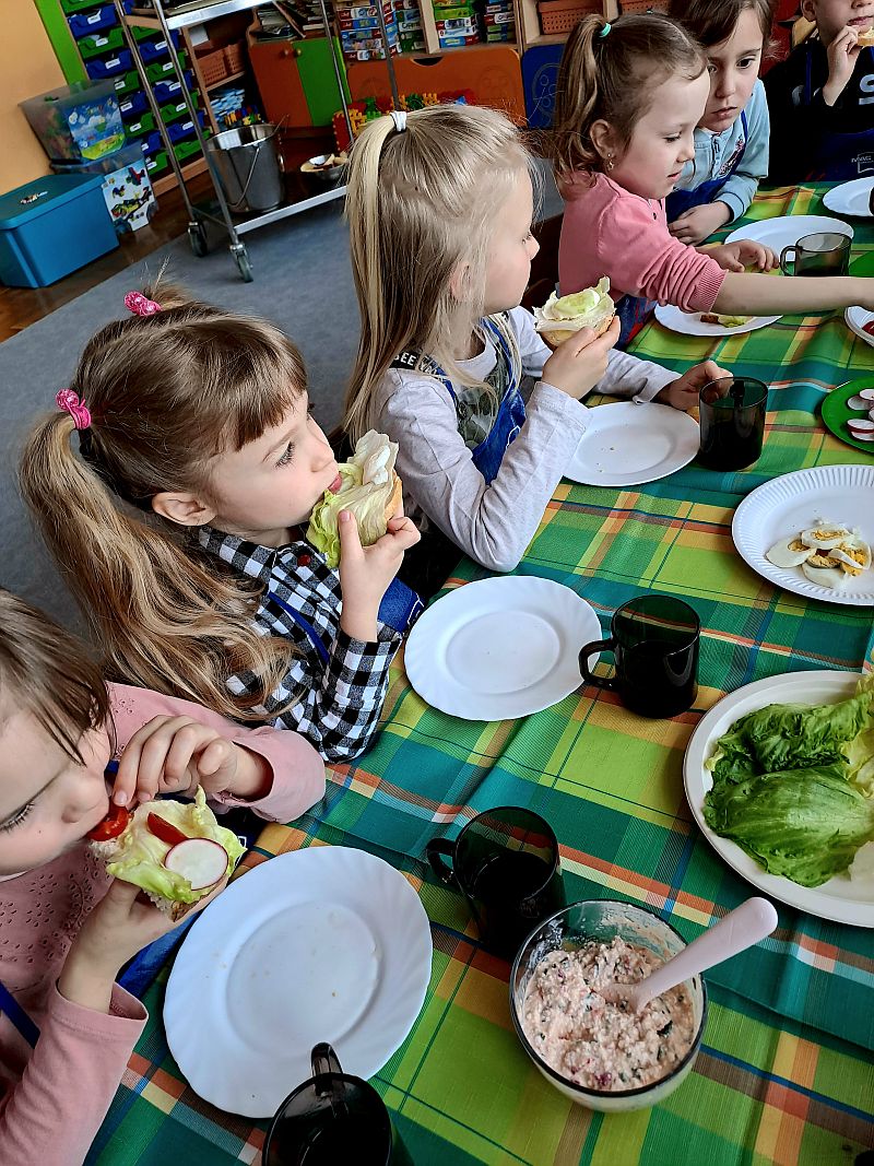 W piątek w grupie IV była okazja do komponowania kanapek według własnych kulinarnych inspiracji. Dzieci zdobywały praktyczne doświadczenie w kwestii samodzielnego przygotowywania kanapek, Przy szwedzkim stole powstawały najsmaczniejsze kompozycje śniadaniowe. Kanapeczki były bardzo kolorowe, smaczne a dzieci bardzo zadowolone.