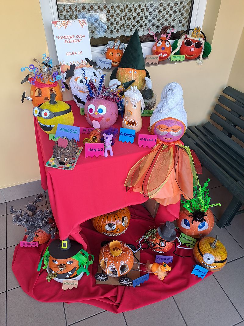 Z tej okazji dzieci z grupy IV wzięły udział w grupowym konkursie pt. DYNIOWE CUDA JEŻYKÓW.