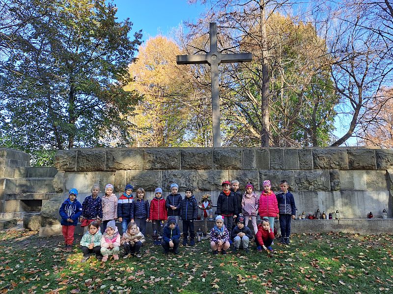 Pamiętając o zmarłych dzieci z grup starszych III ,IV ,V i VI udały się na pobliski cmentarz wojskowy.
