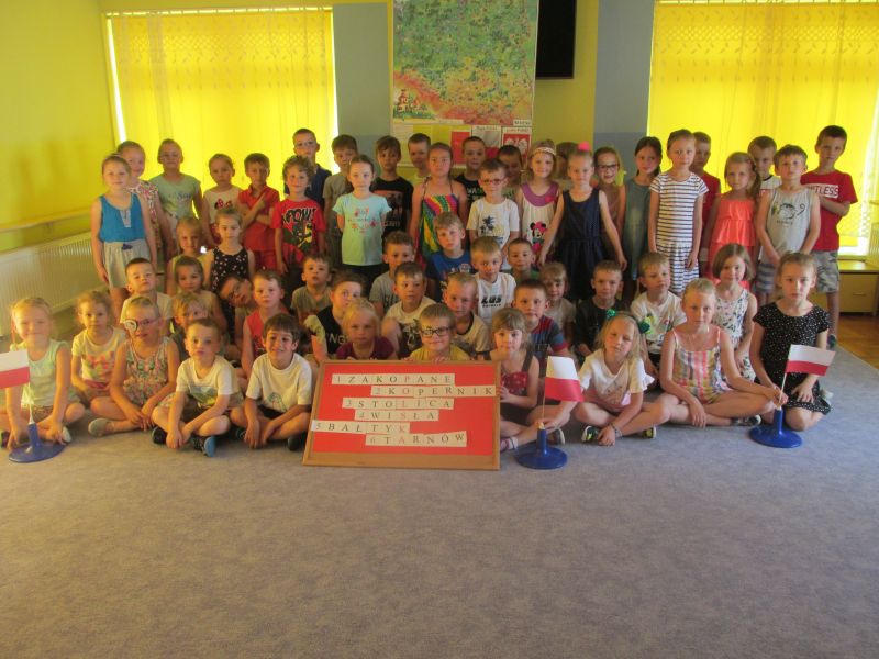 7.06.2019r. dzieci z grupy II i III wzięły udział w konkursie " Jestem małym przedszkolakiem, ale dużym Polakiem". Nasi wychowankowie wykazywali się wiedzą na temat swojego kraju rywalizując między dwoma grupami. Poziom i zakres wiadomości przedszkolaków okazał się tak wszechstronny i wyrównany, że przyznano dwa równorzędne pierwsze miejsca.Uczestnikom konkursu serdecznie gratulujemy.