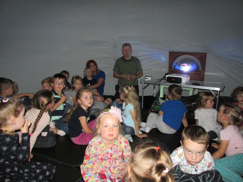16 maja 2018 r w naszym przedszkolu gościło mobilne kino sferyczne. Dzieci miały niepowtarzalną okazję obejrzeć film wewnątrz kopuły w technice 3D. Były to niezapomniane wrażenia. Fotorelacja z tego wydarzenia jest dość skromna ponieważ w ciemnej kopule nie było możliwości zrobienia większej ilości zdjęć, za to w pamięci dzieci na pewno pozostaną niesamowite wspomnienia.